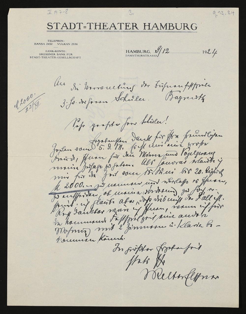 eigenhändiger Brief von Walter Elschner an Friedrich Wilhelm Schuler