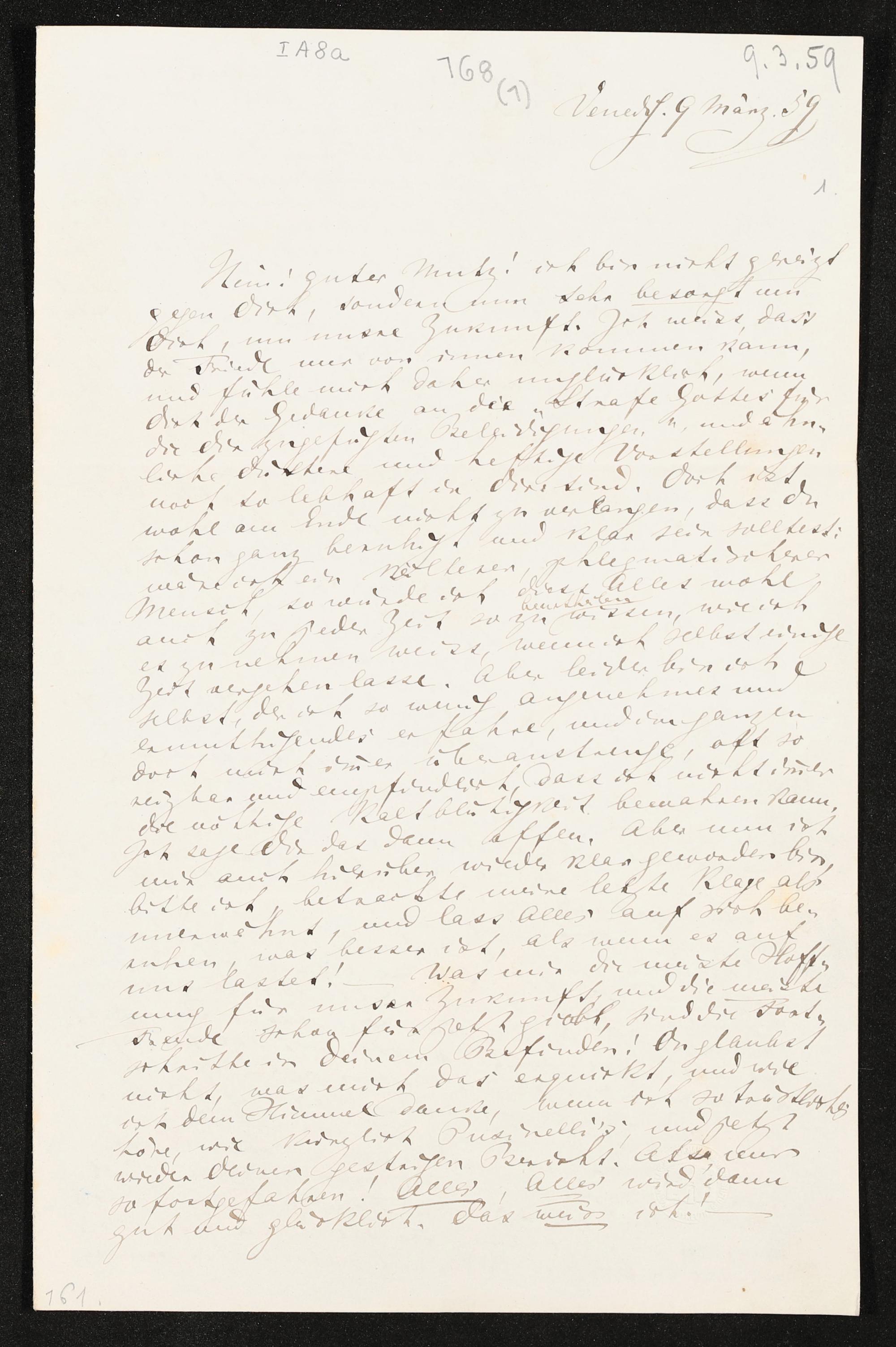 eigenhändiger Brief von Richard Wagner an Minna Wagner