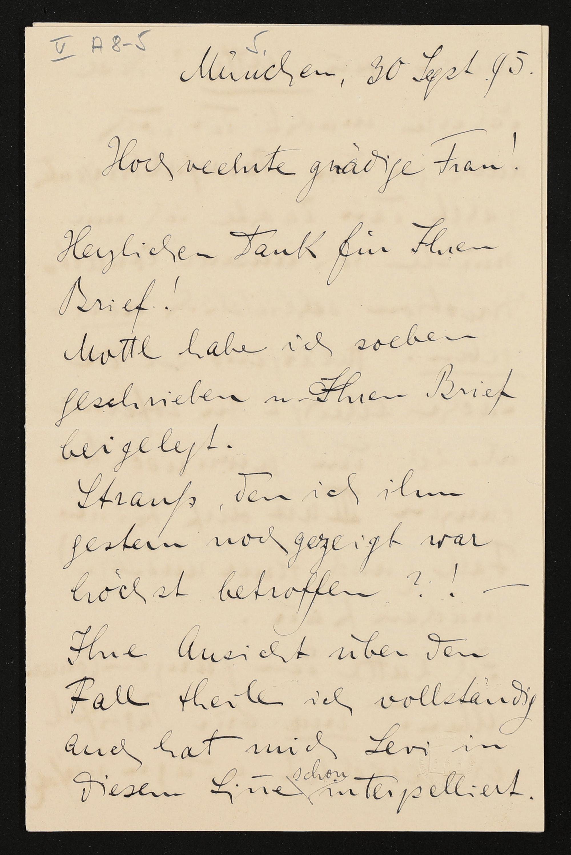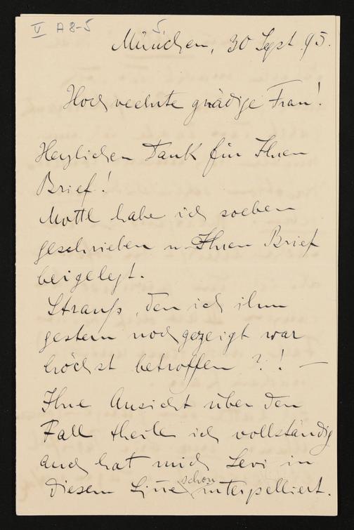 eigenhändiger Brief von Franz Fischer an Cosima Wagner