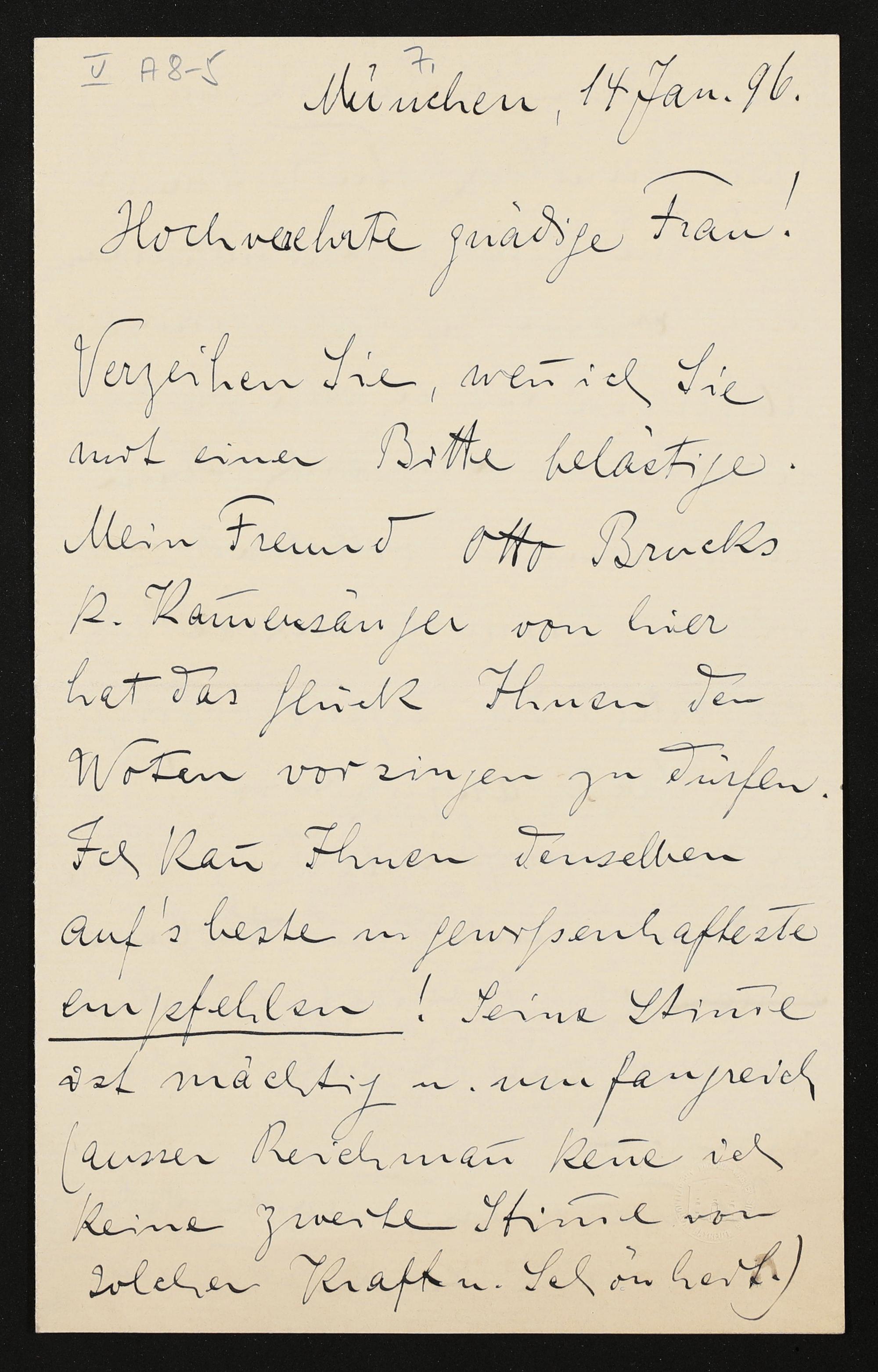 eigenhändiger Brief von Franz Fischer an Cosima Wagner
