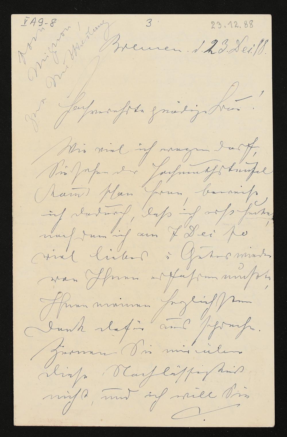 eigenhändiger Brief von Fritz Friedrichs an Cosima Wagner