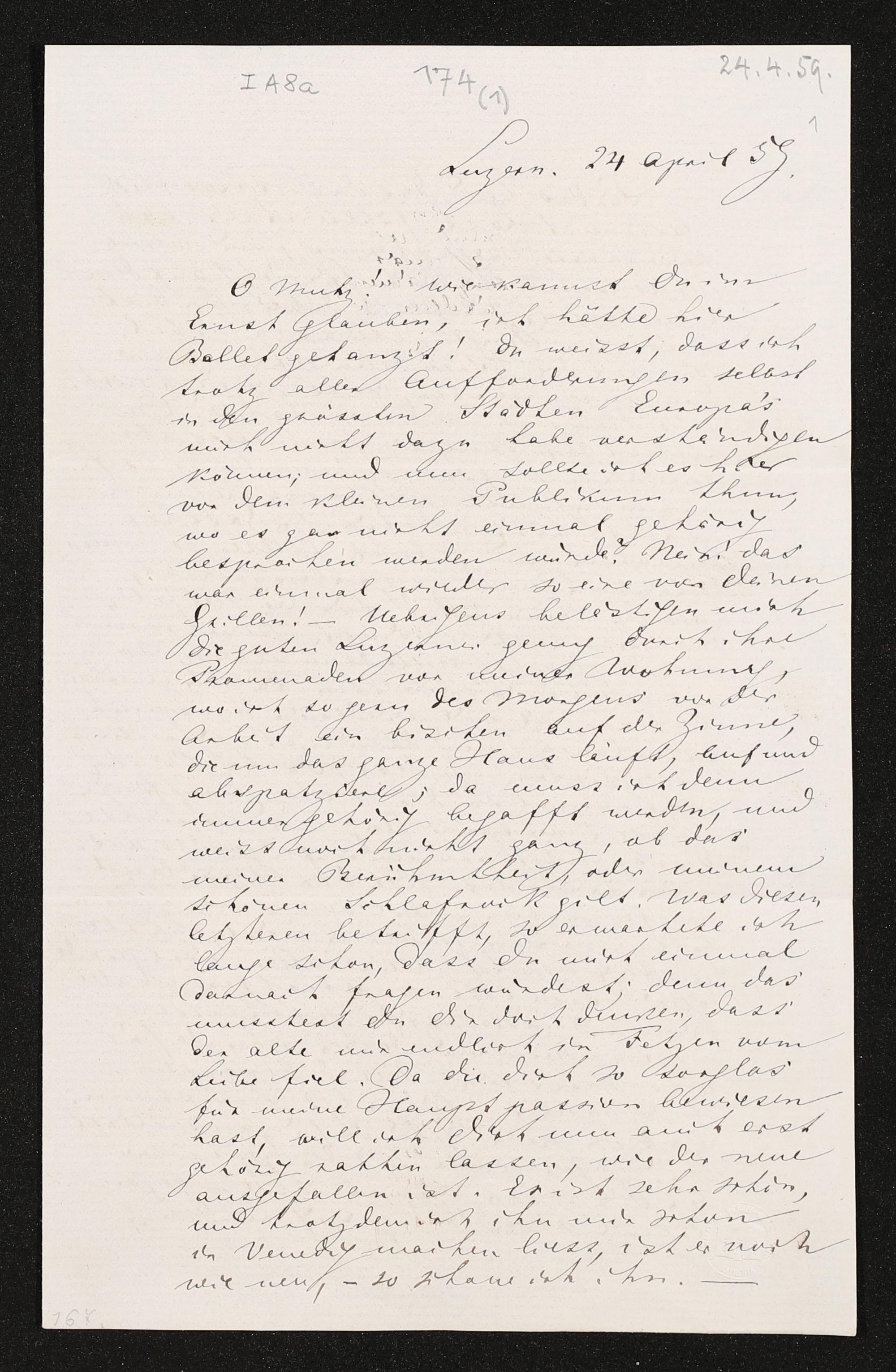 eigenhändiger Brief von Richard Wagner an Minna Wagner