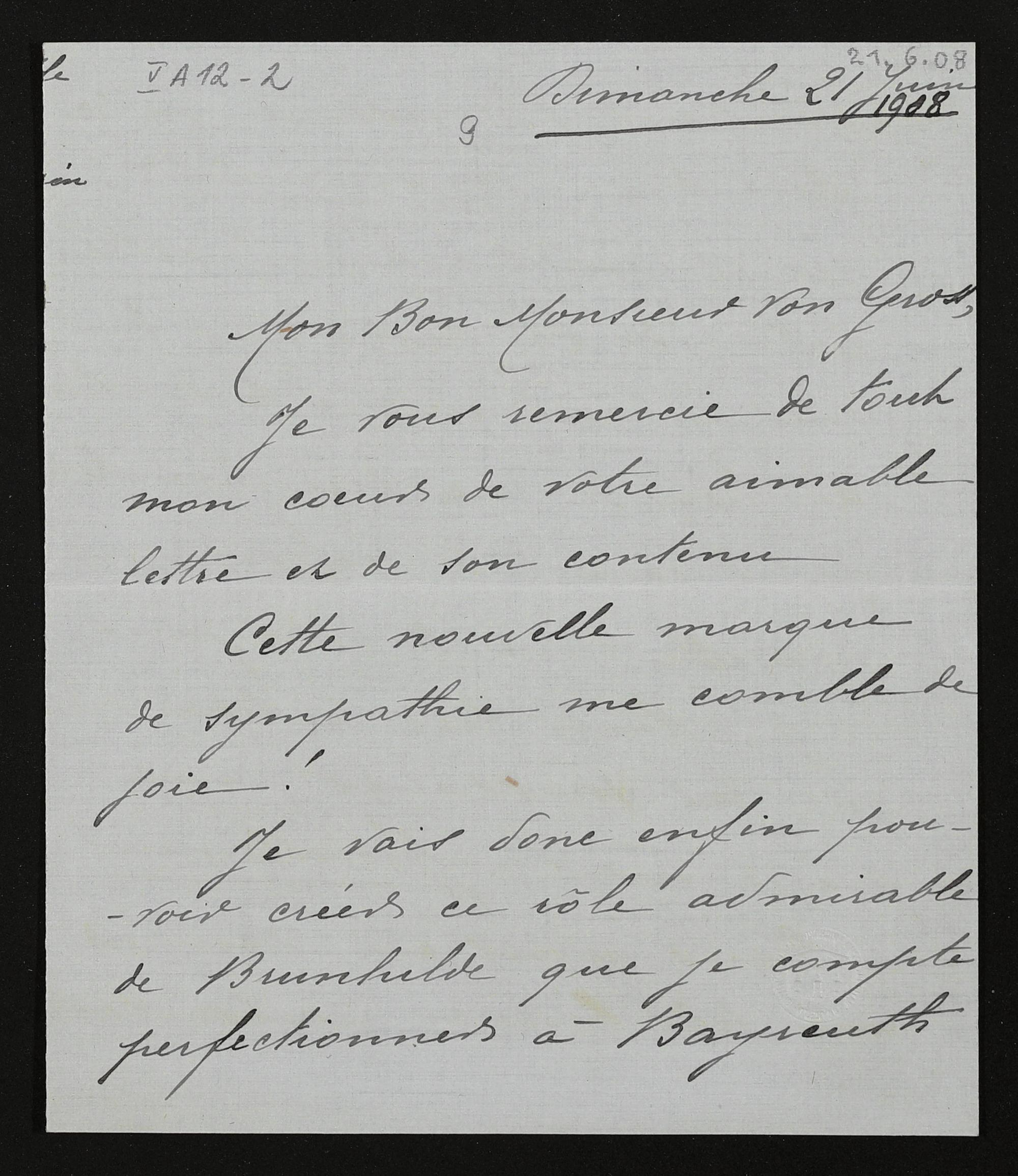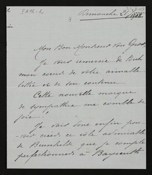 eigenhändiger Brief von Louise Grandjean an Adolf von Gross