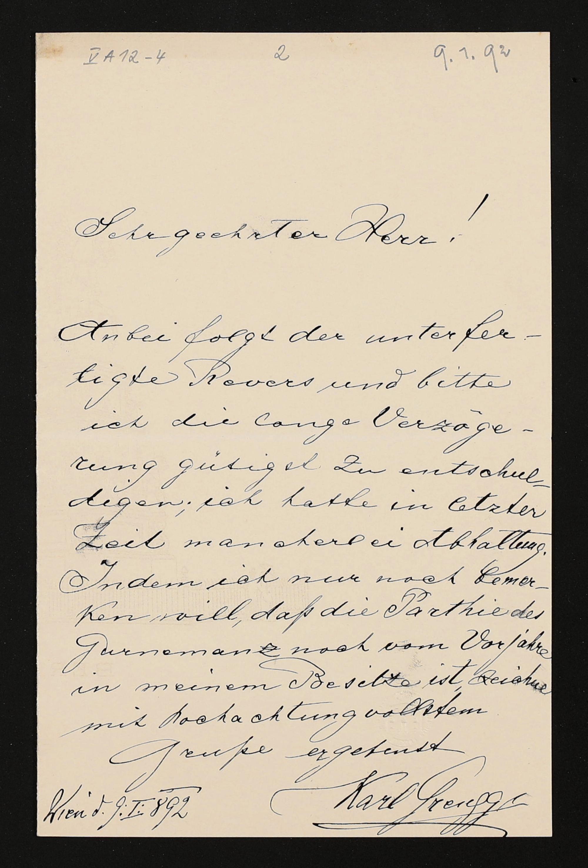 eigenhändiger Brief von Karl Grengg mutmaßlich an die Verwaltung der Bühnenfestspiele