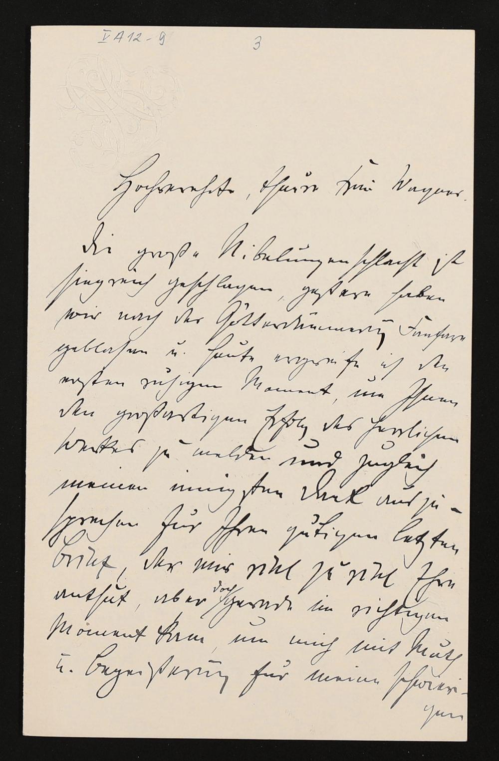 eigenhändiger Brief von Heinrich Gudehus an Cosima Wagner