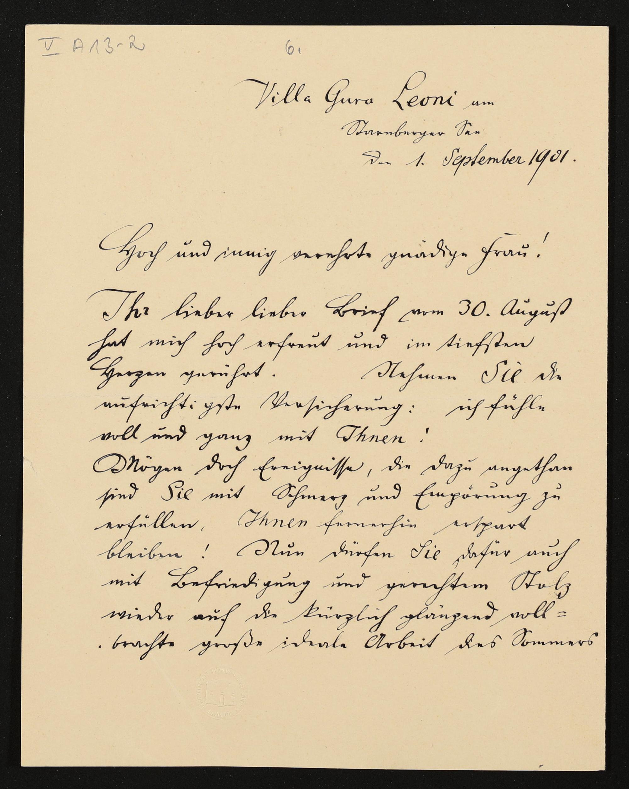 eigenhändiger Brief von Eugen Gura an Cosima Wagner
