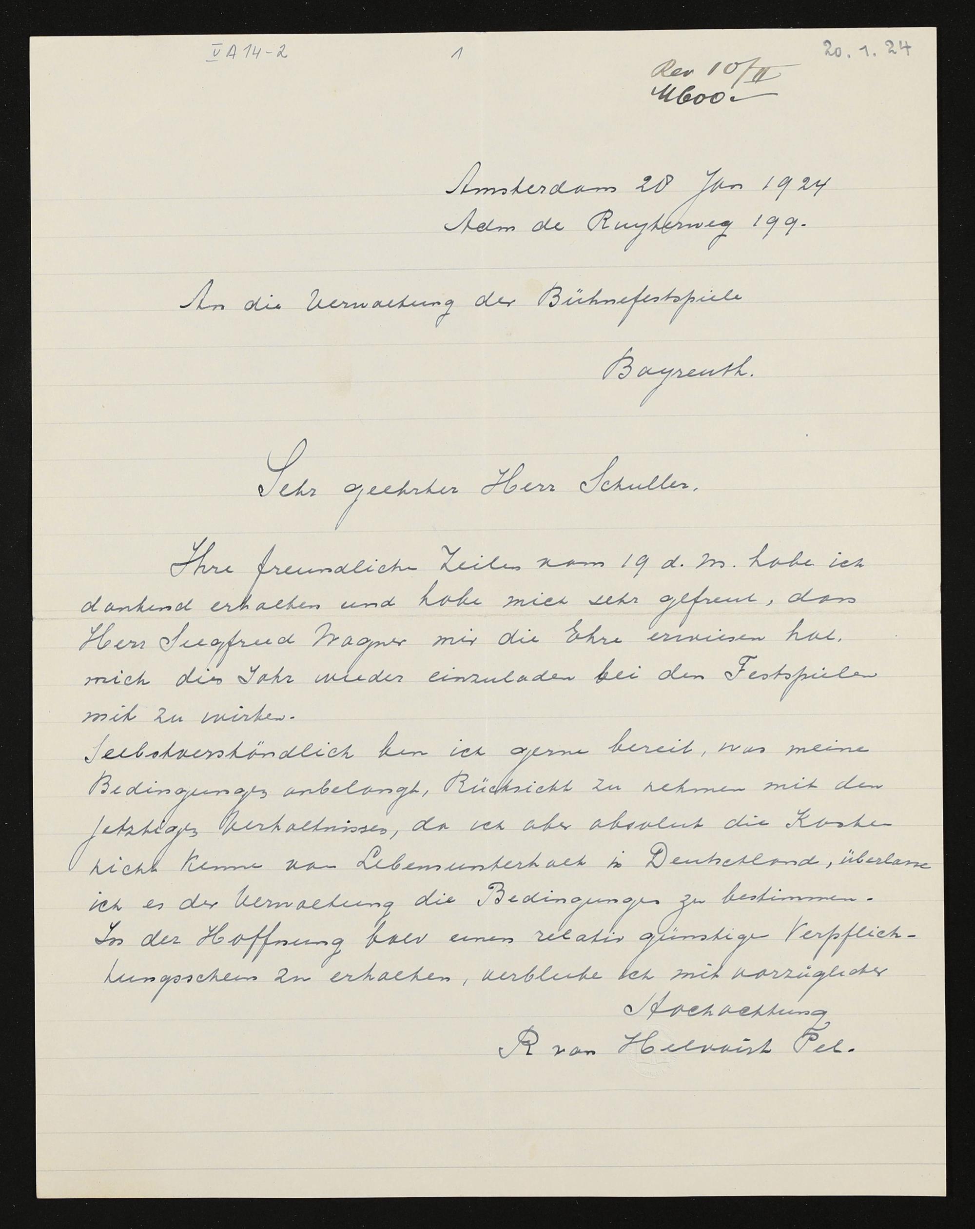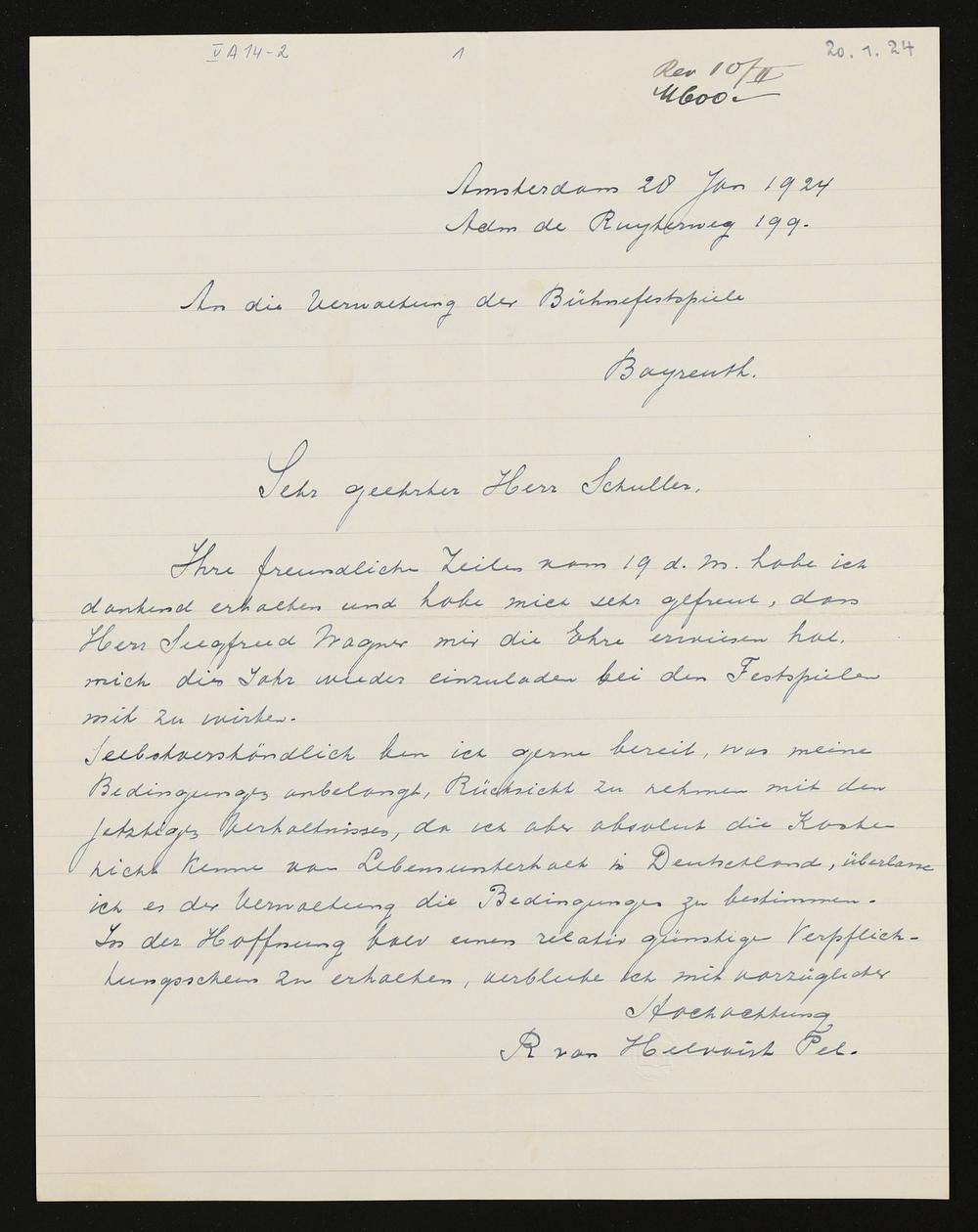 eigenhändiger Brief von Richard van Helvoirt Pel an Friedrich Wilhelm Schuler