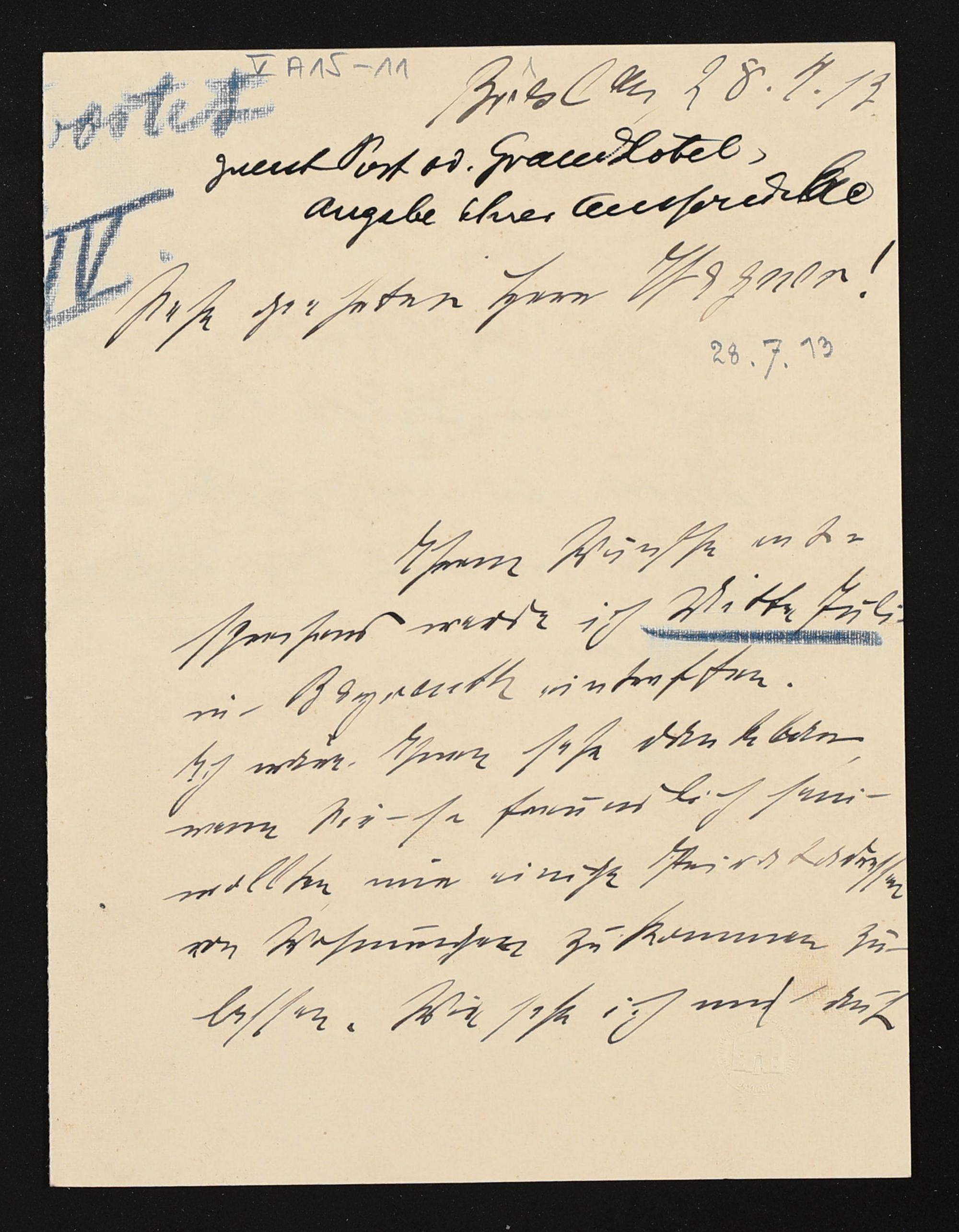 eigenhändiger Brief von Barbara Mickley-Kemp an Siegfried Wagner