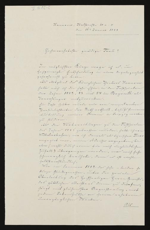 eigenhändiger Brief von R. Jeltsch an Cosima Wagner