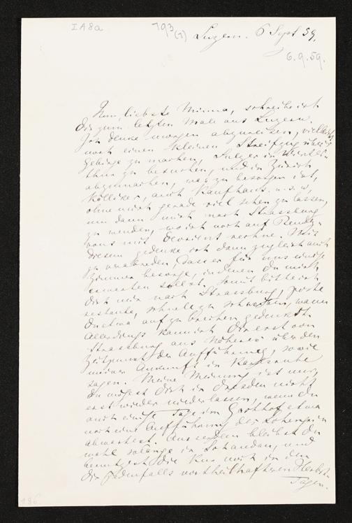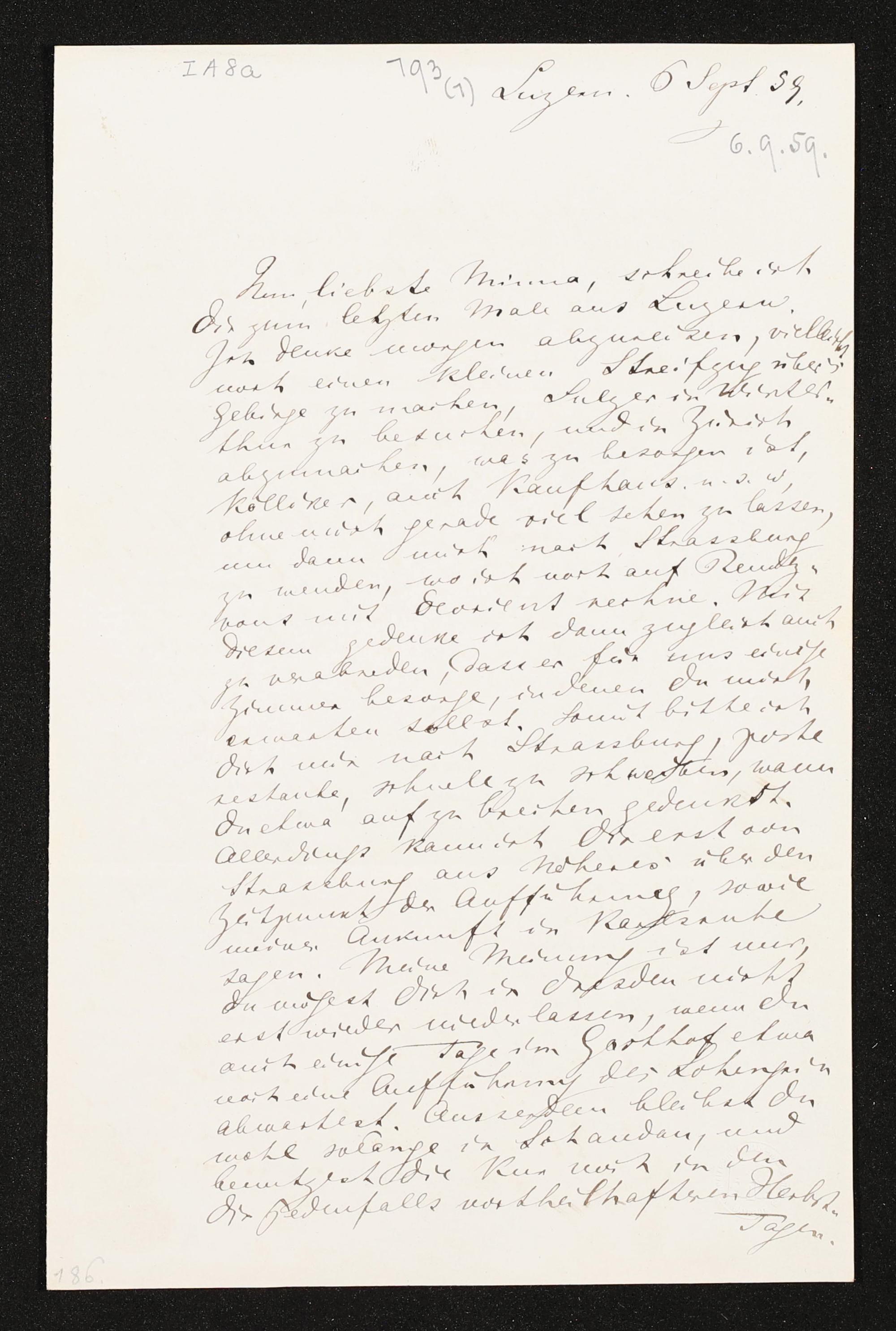 eigenhändiger Brief von Richard Wagner an Minna Wagner