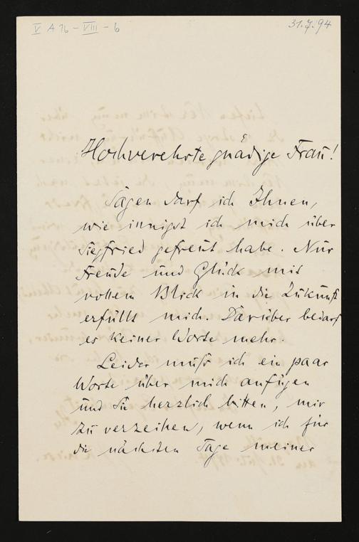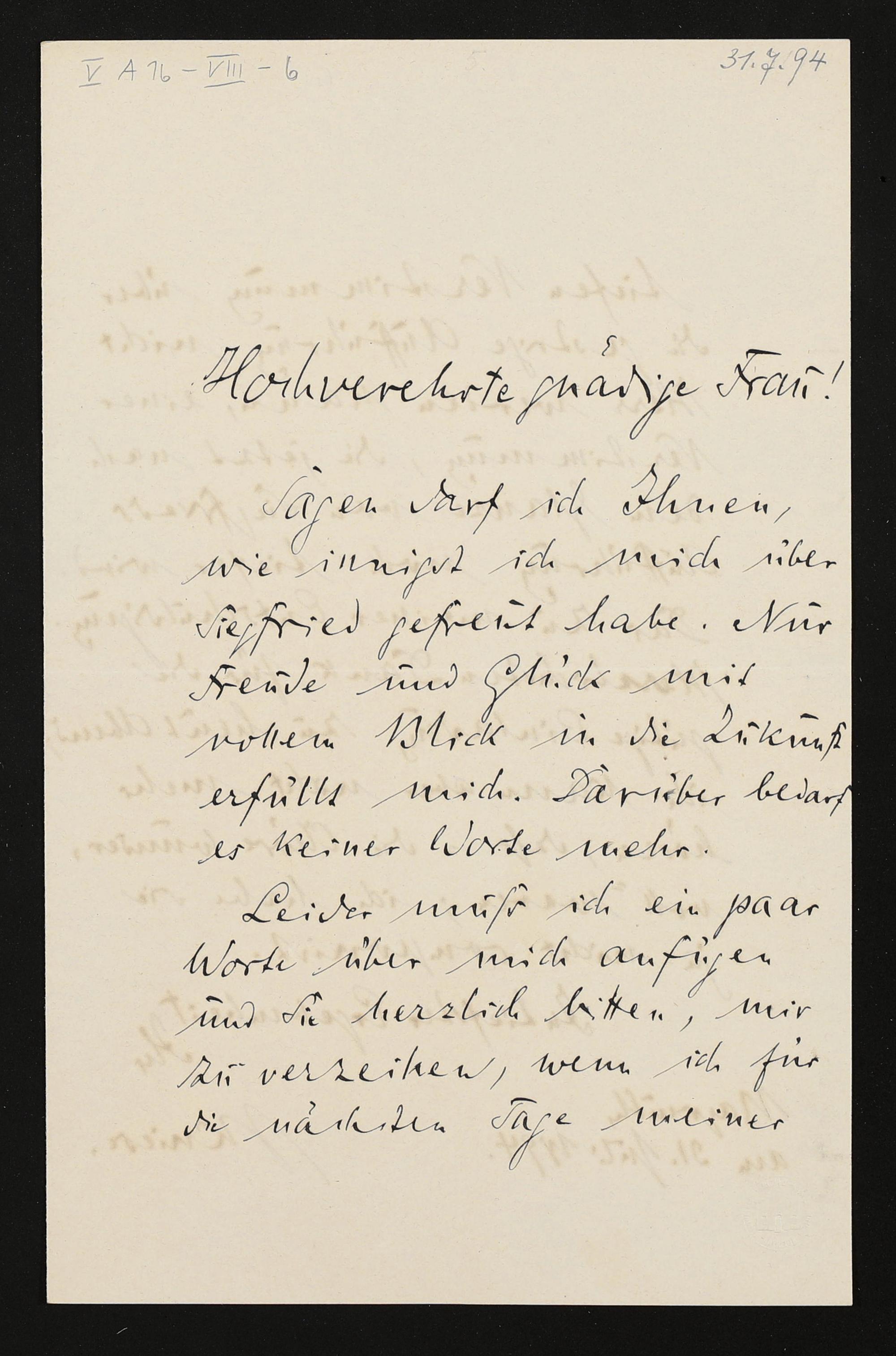 eigenhändiger Brief von Julius Kniese an Cosima Wagner