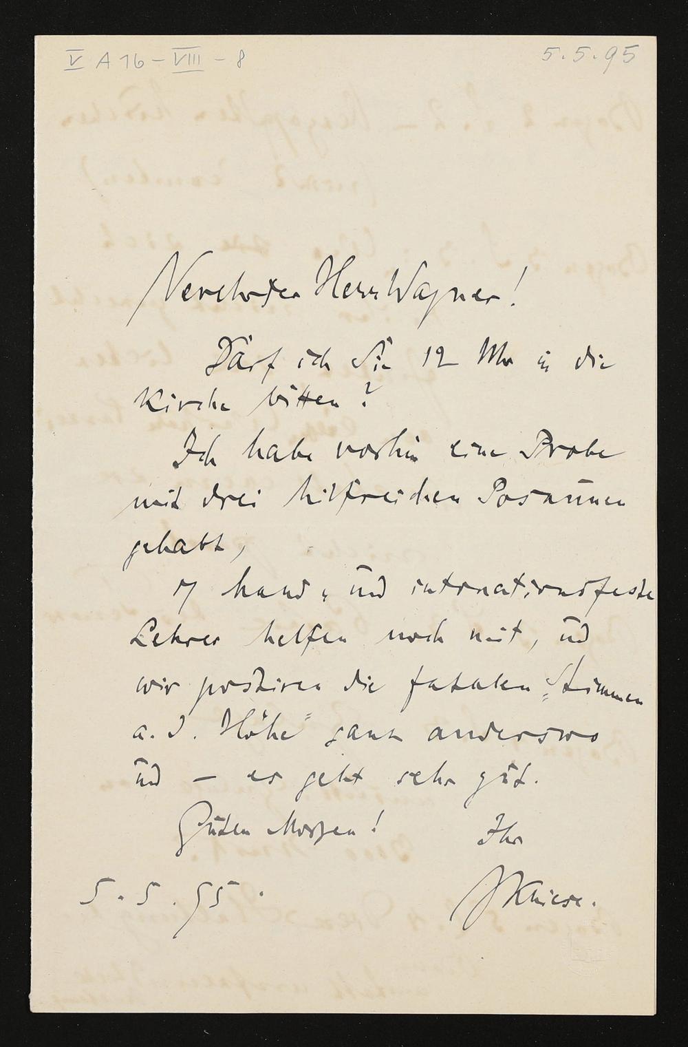 eigenhändiger Brief von Julius Kniese an Siegfried Wagner, handschriftliche Zeilen in fremder Hand