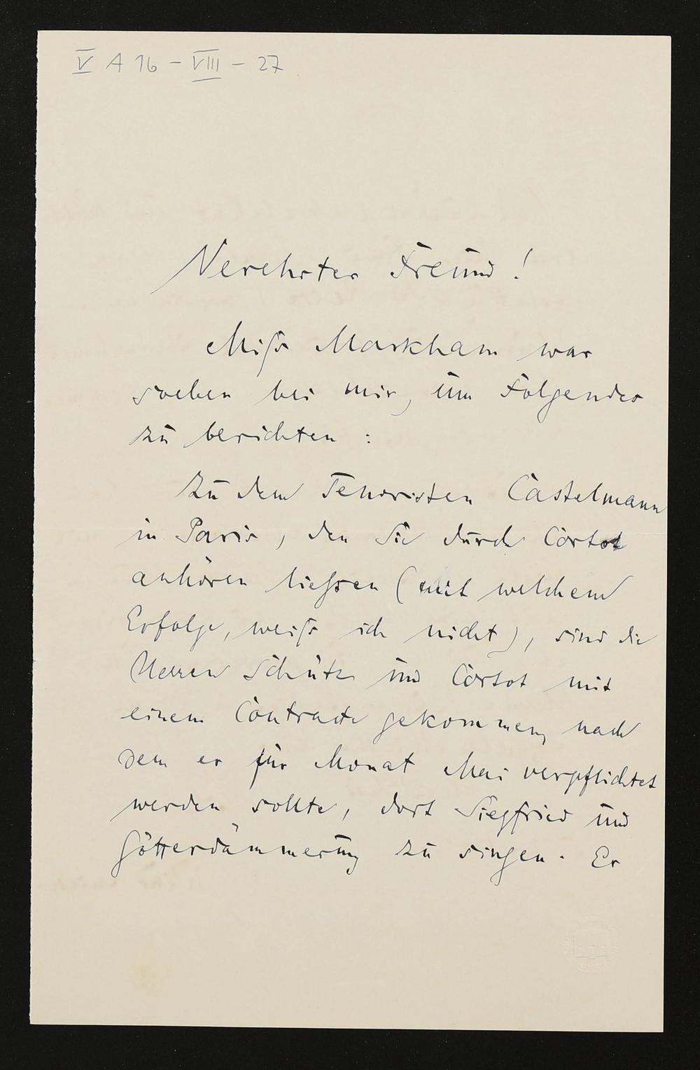 eigenhändiger Brief von Julius Kniese an Adolf von Gross