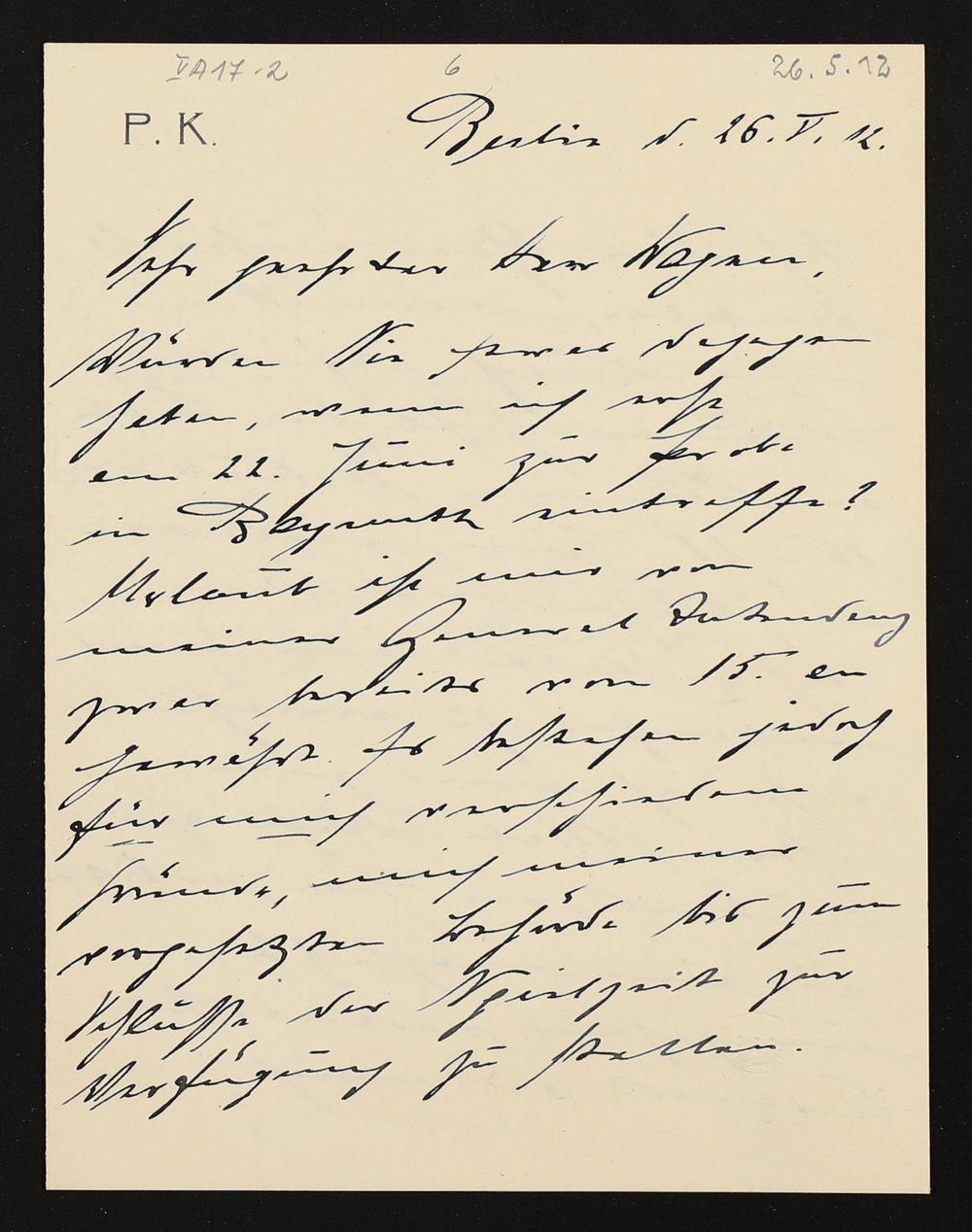 eigenhändiger Brief von Paul Knüpfer an Siegfried Wagner, eigenhändige Zeilen von Adolf von Gross