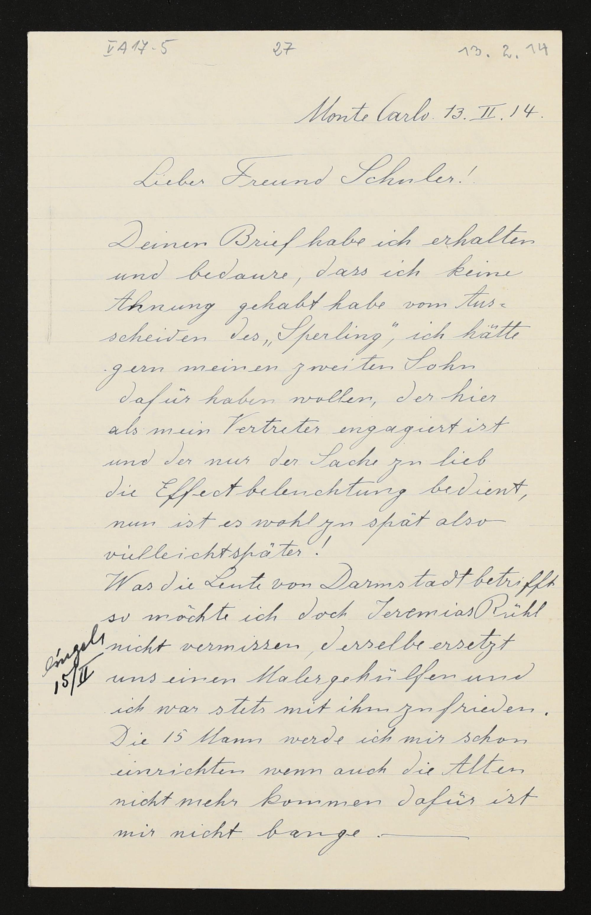 eigenhändiger Brief von Friedrich Kranich senior an Friedrich Wilhelm Schuler