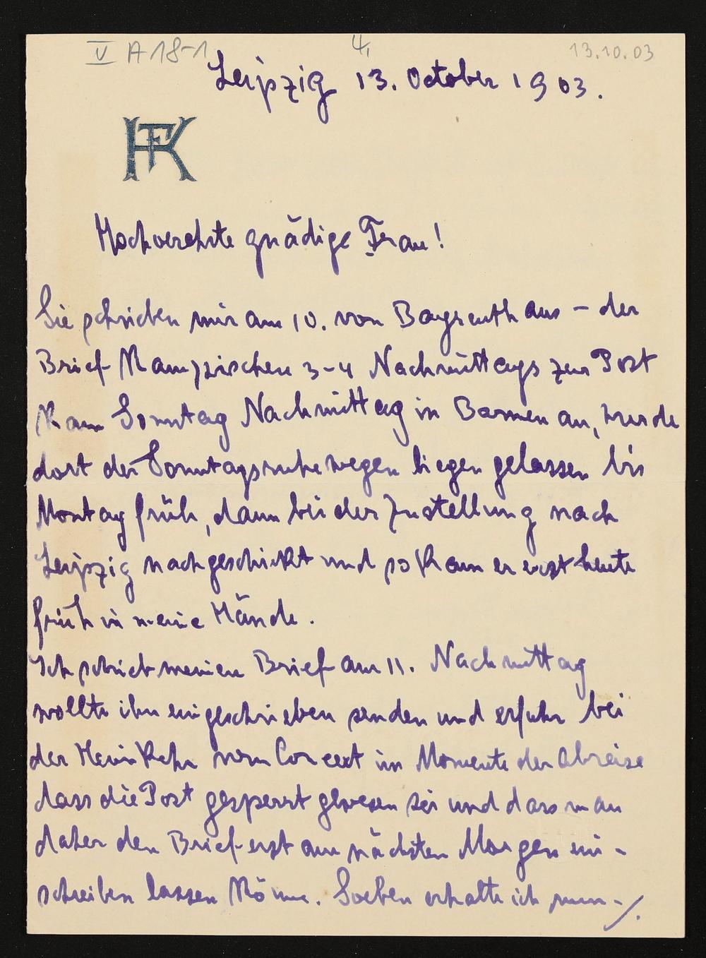 eigenhändiger Brief von Felix Kraus an Cosima Wagner