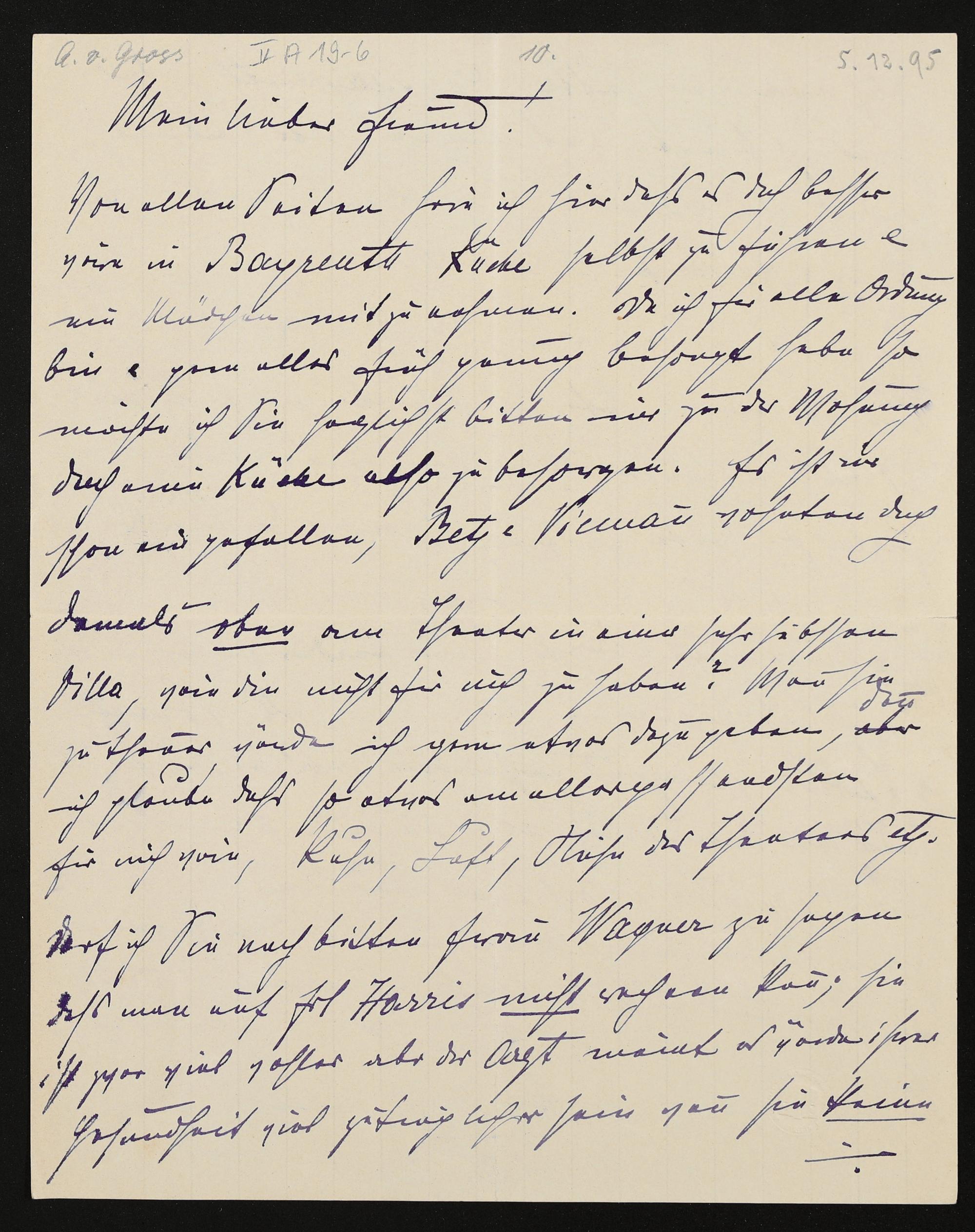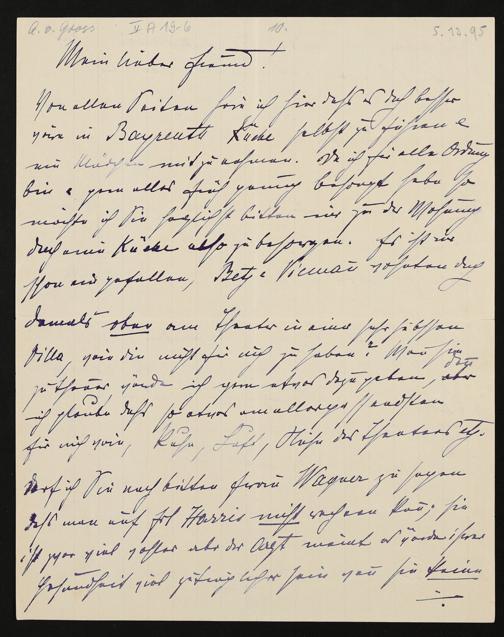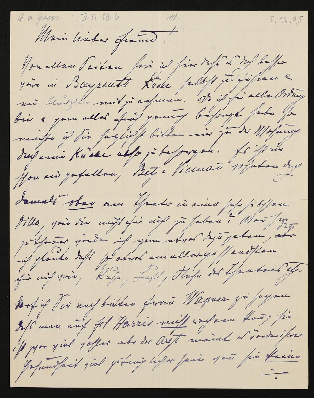 eigenhändiger Brief von Lilli Lehmann-Kalisch an Adolf von Gross