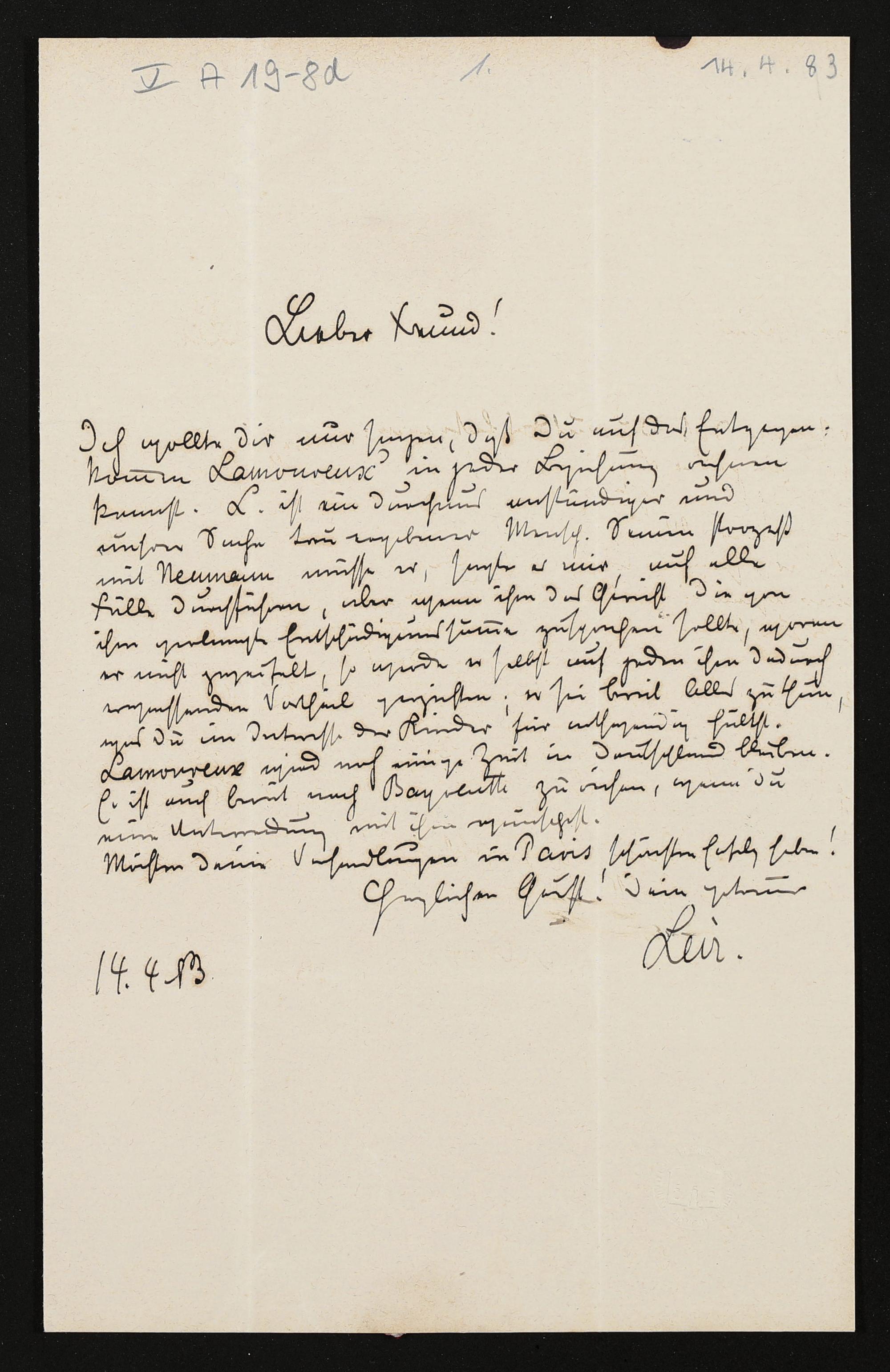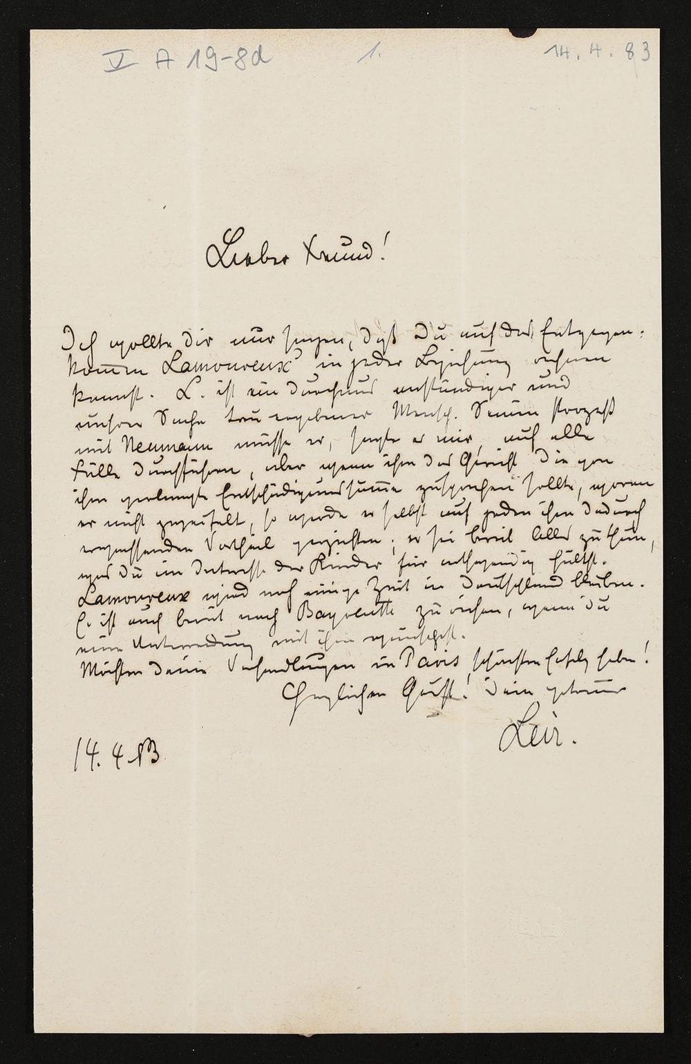 eigenhändiger Brief von Hermann Levi an Adolf von Gross