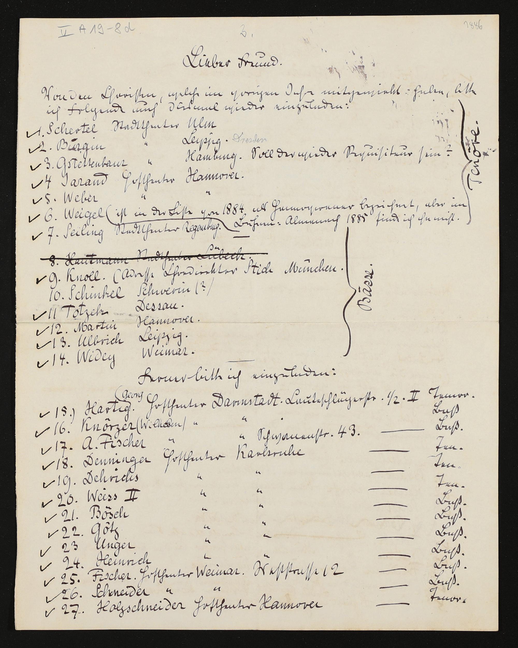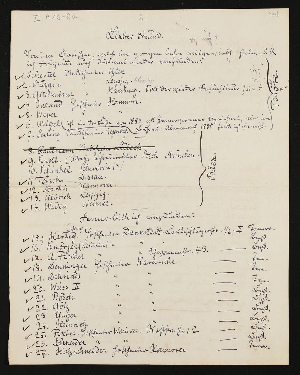 eigenhändiger Brief von Hermann Levi mutmaßlich an Adolf von Gross