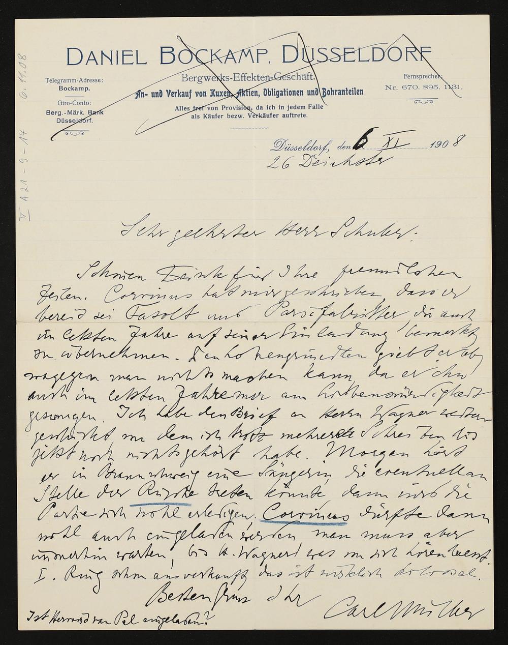 eigenhändiger Brief von Carl Müller an Friedrich Wilhelm Schuler