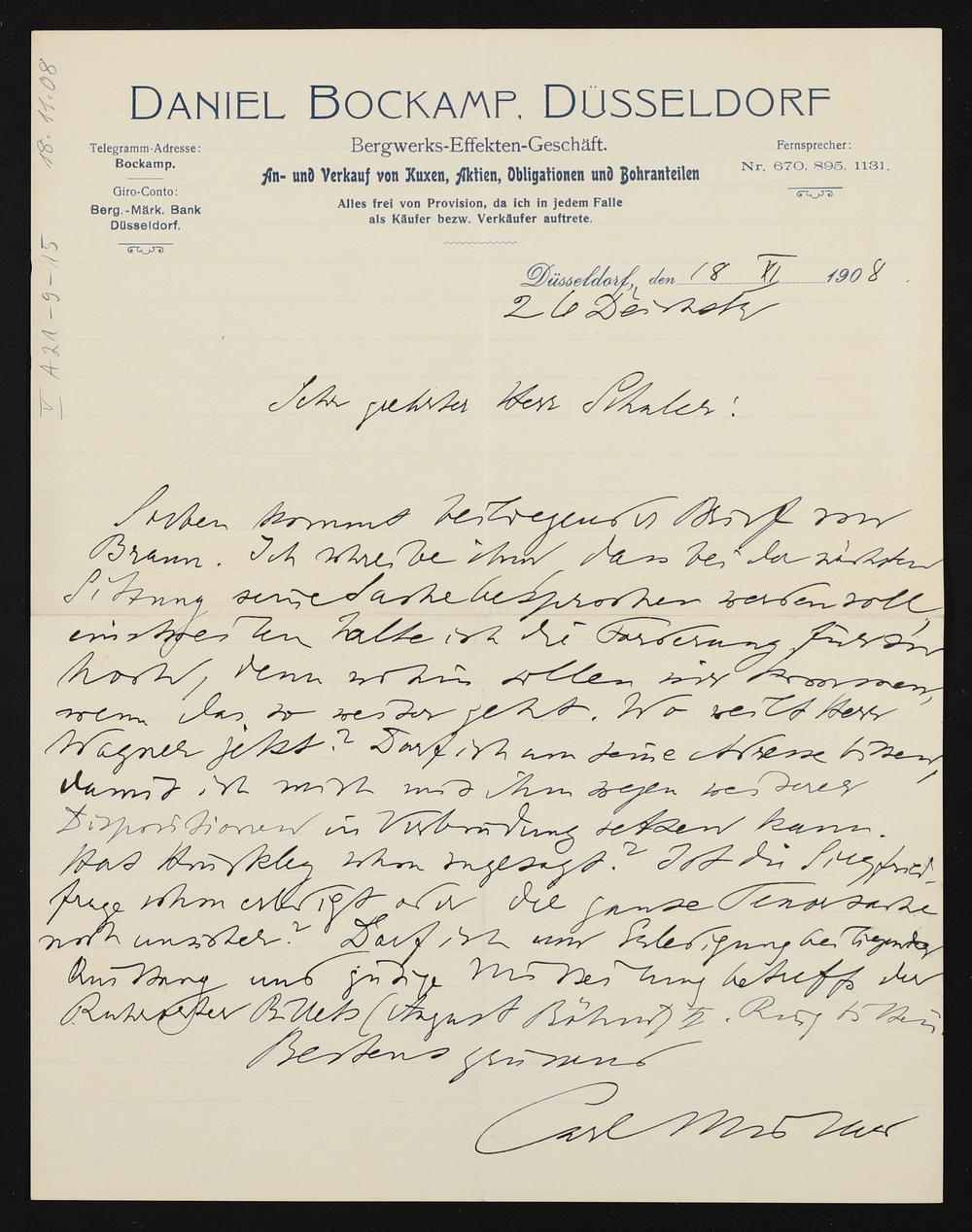 eigenhändiger Brief von Carl Müller an Friedrich Wilhelm Schuler