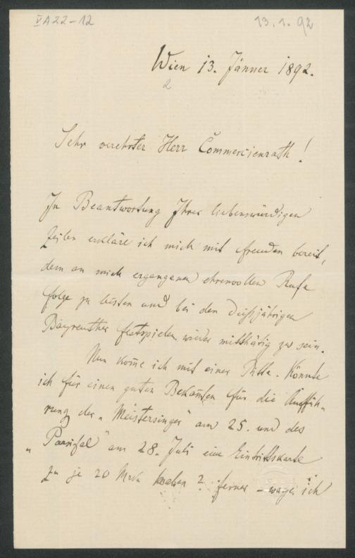 eigenhändiger Brief von Hans Paumgartner an Adolf von Gross