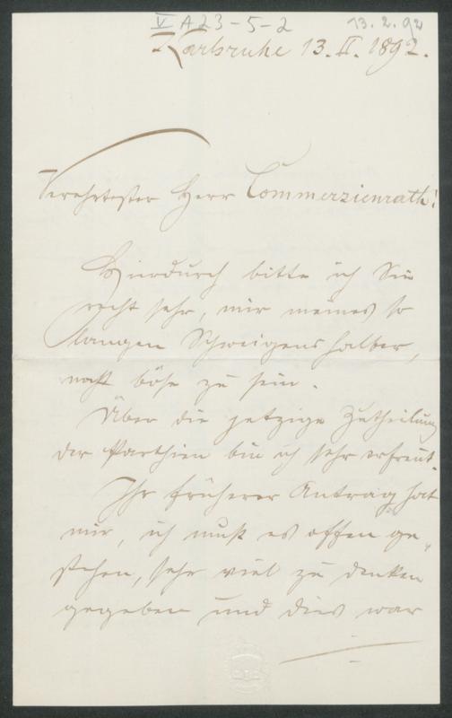 eigenhändiger Brief von Fritz Plank an Adolf von Gross