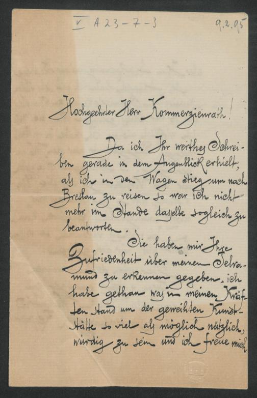 eigenhändiger Brief von Demeter Popovici an Adolf von Gross