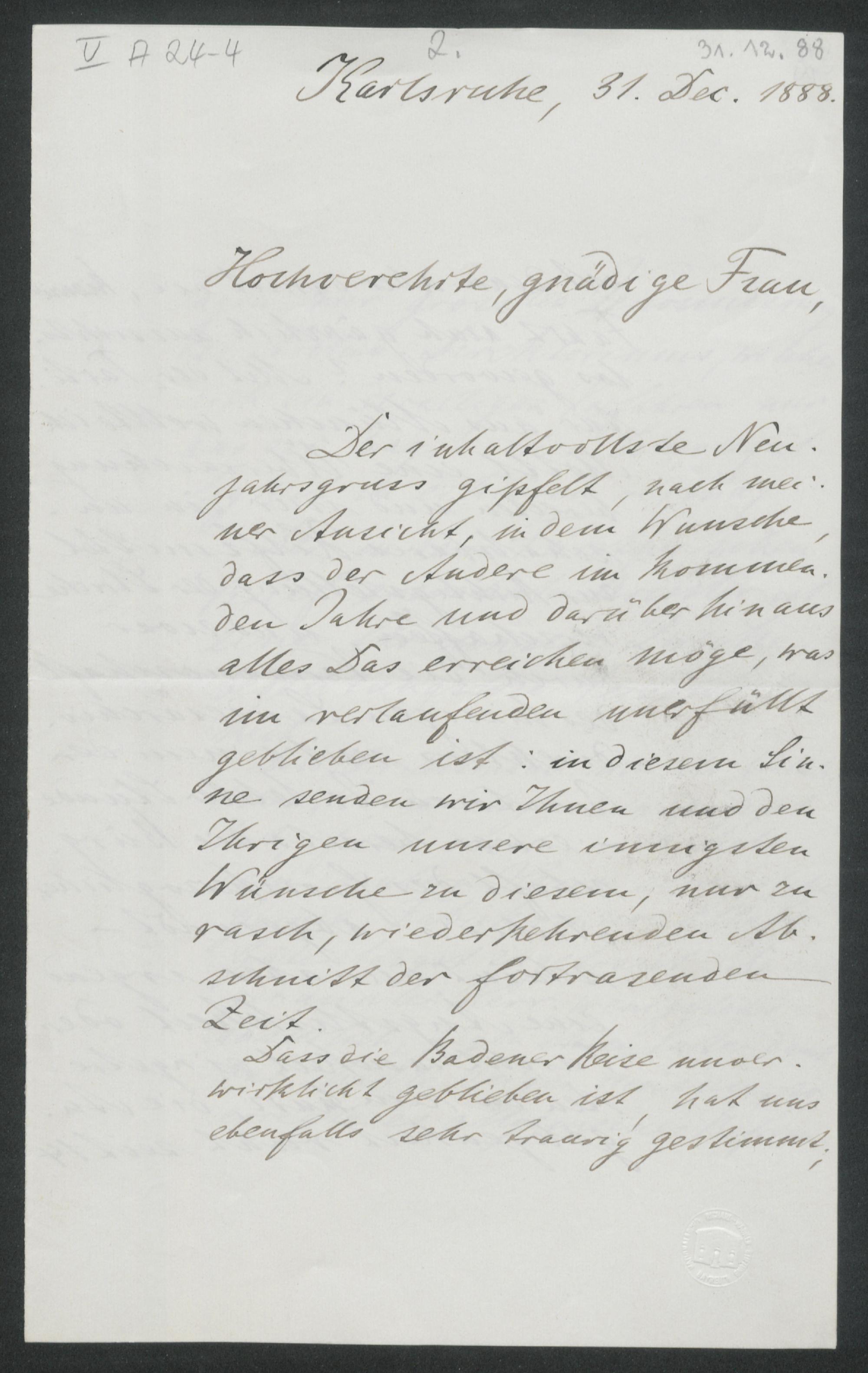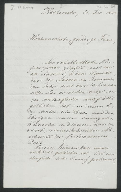 eigenhändiger Brief von Eduard Reuss an Cosima Wagner