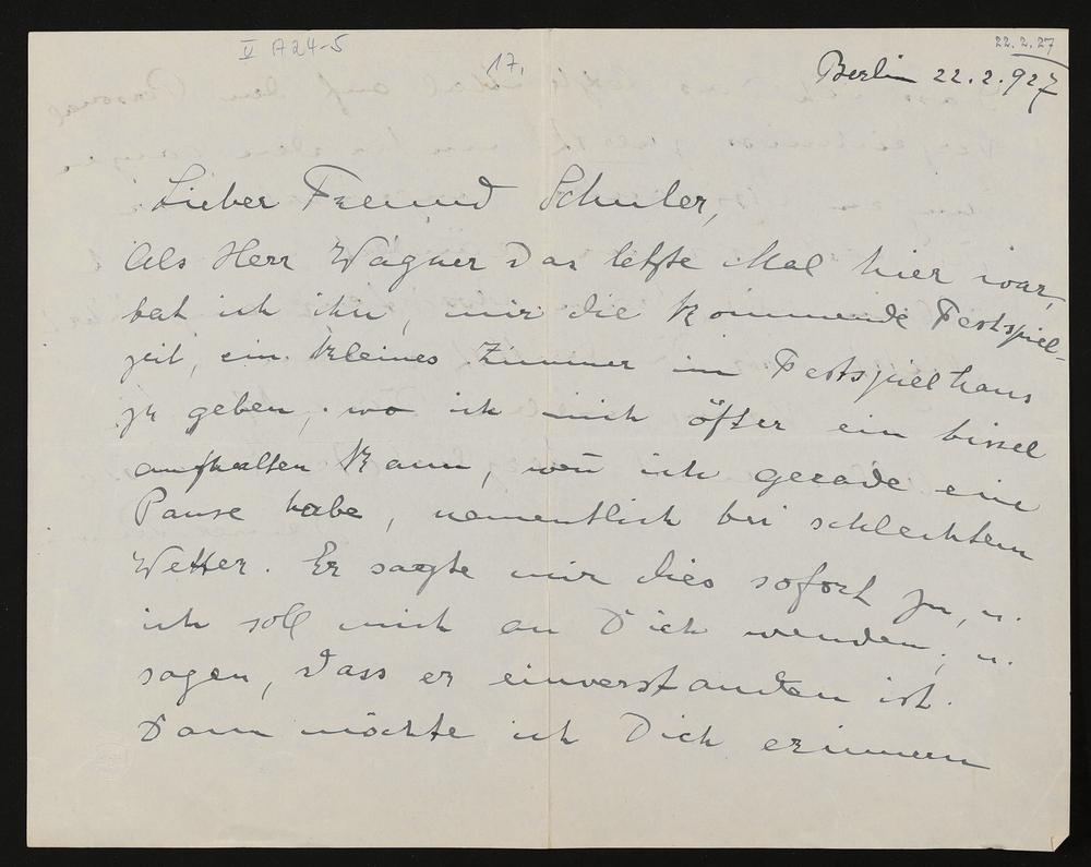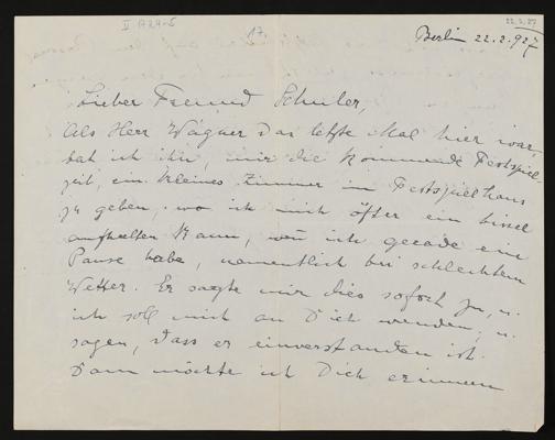 eigenhändiger Brief von Luise Reuss an Friedrich Wilhelm Schuler