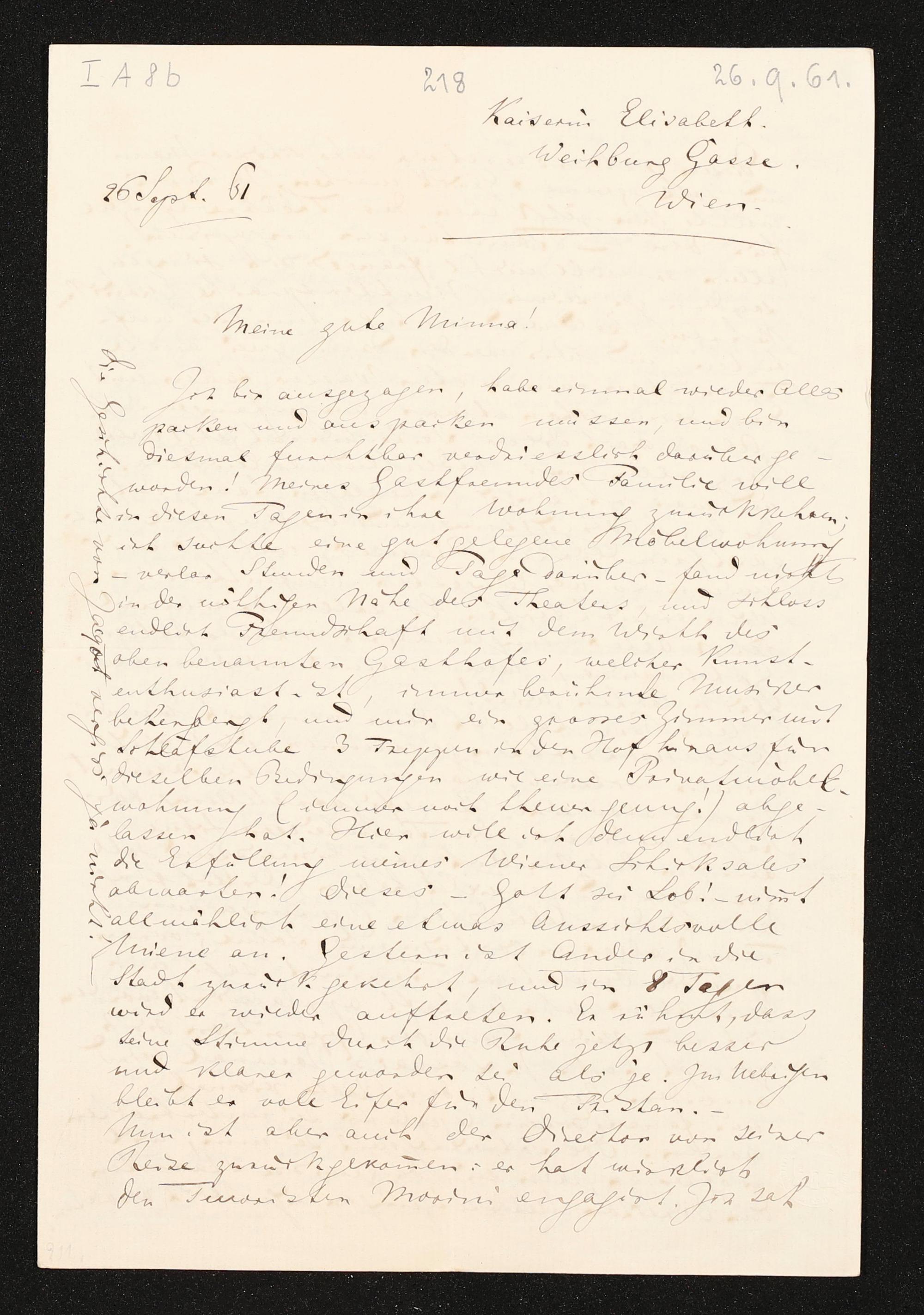 eigenhändiger Brief von Richard Wagner an Minna Wagner