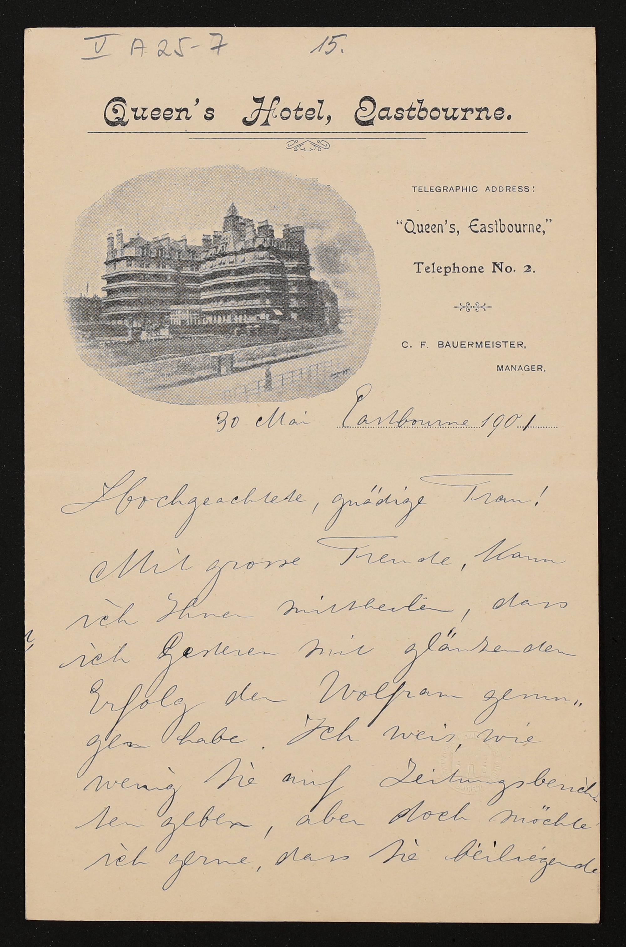 eigenhändiger Brief von Anton van Rooy an Cosima Wagner