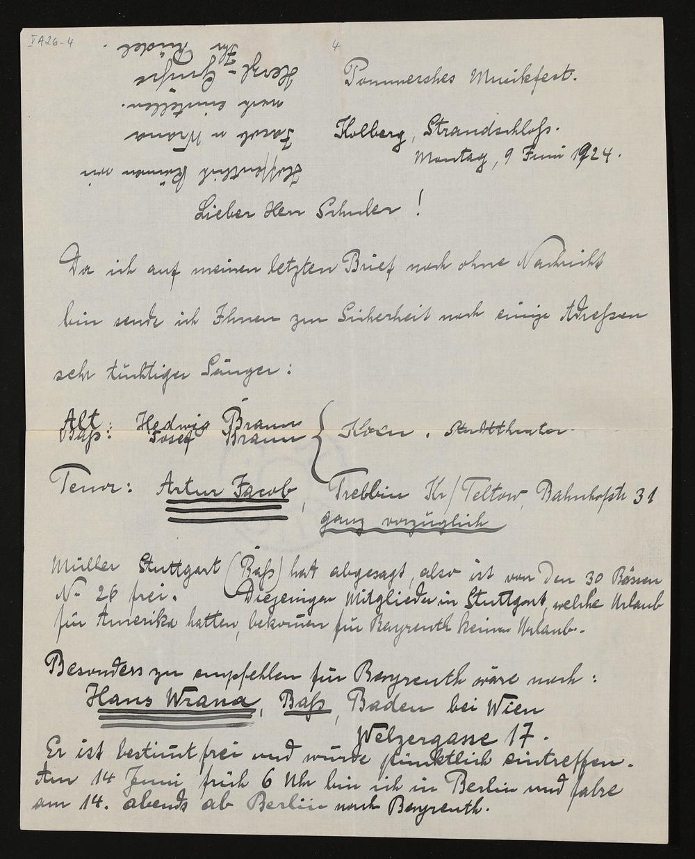 eigenhändiger Brief von Hugo Rüdel an Friedrich Wilhelm Schuler