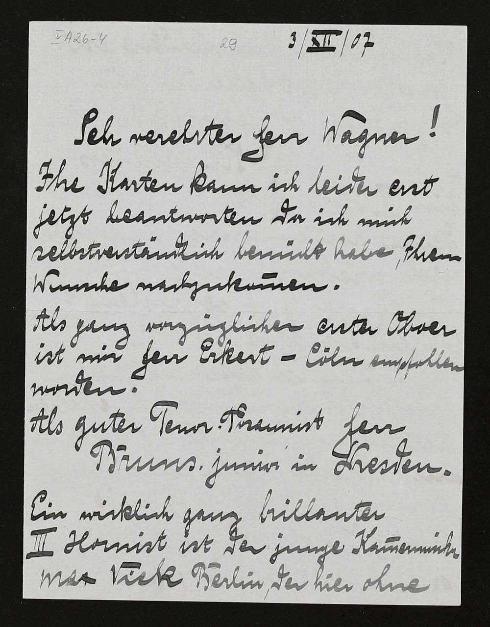 eigenhändiger Brief von Hugo Rüdel an Siegfried Wagner