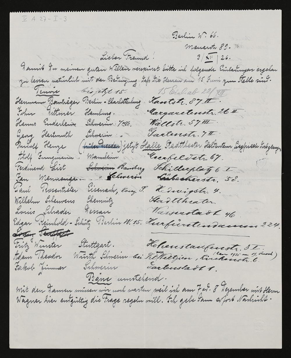 eigenhändiger Brief von Hugo Rüdel an Friedrich Wilhelm Schuler