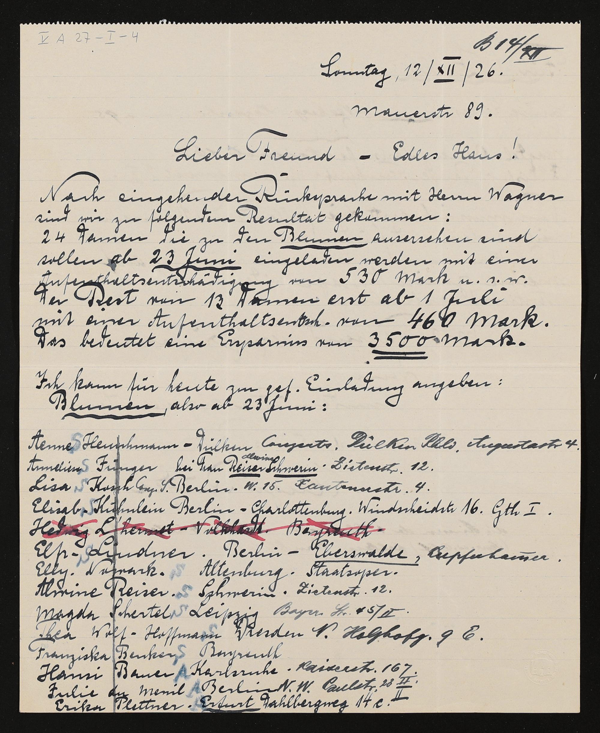 eigenhändiger Brief von Hugo Rüdel an Friedrich Wilhelm Schuler