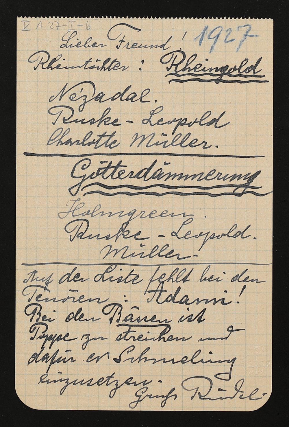 eigenhändige Auflistung von Hugo Rüdel an Friedrich Wilhelm Schuler