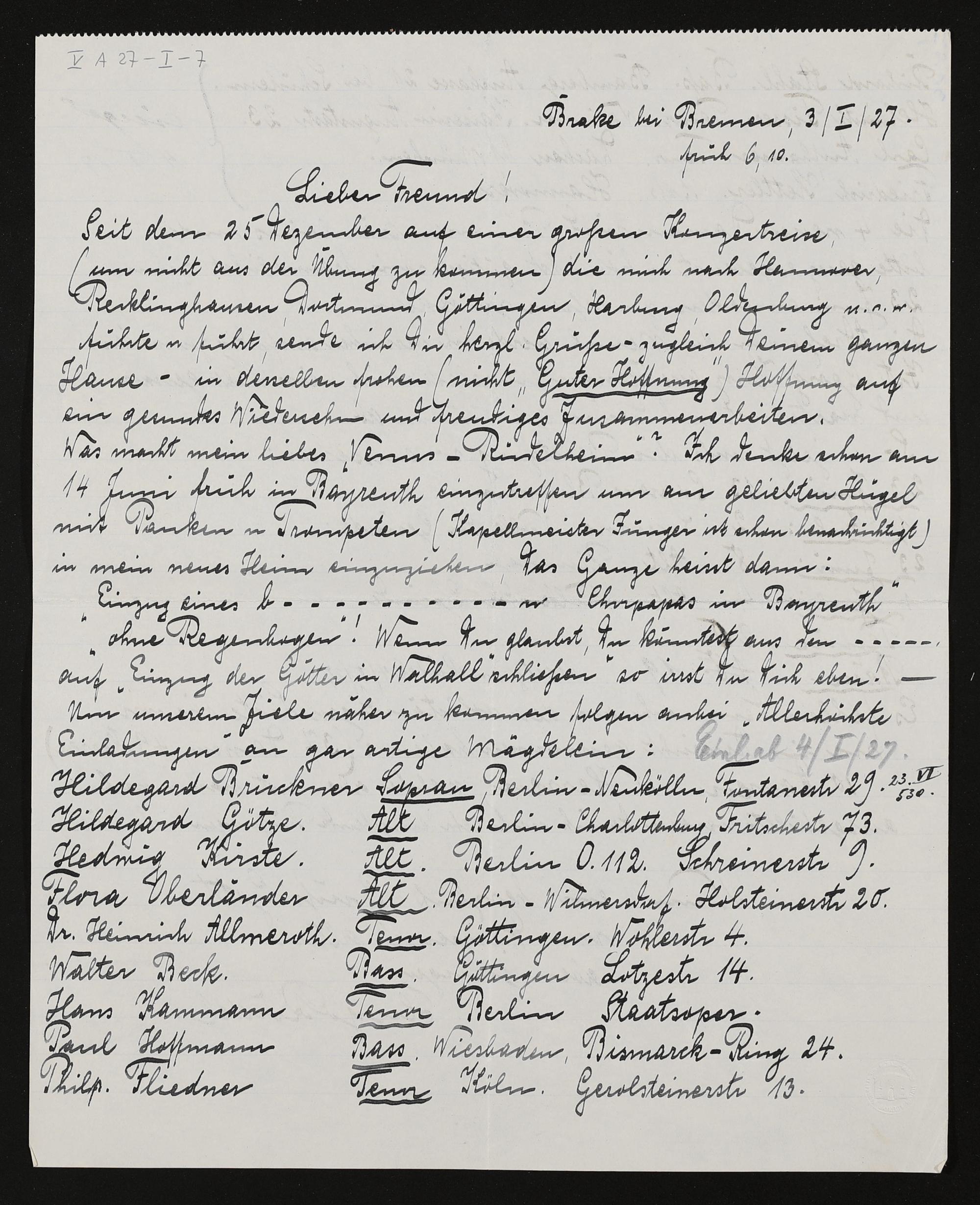 eigenhändiger Brief von Hugo Rüdel an Friedrich Wilhelm Schuler