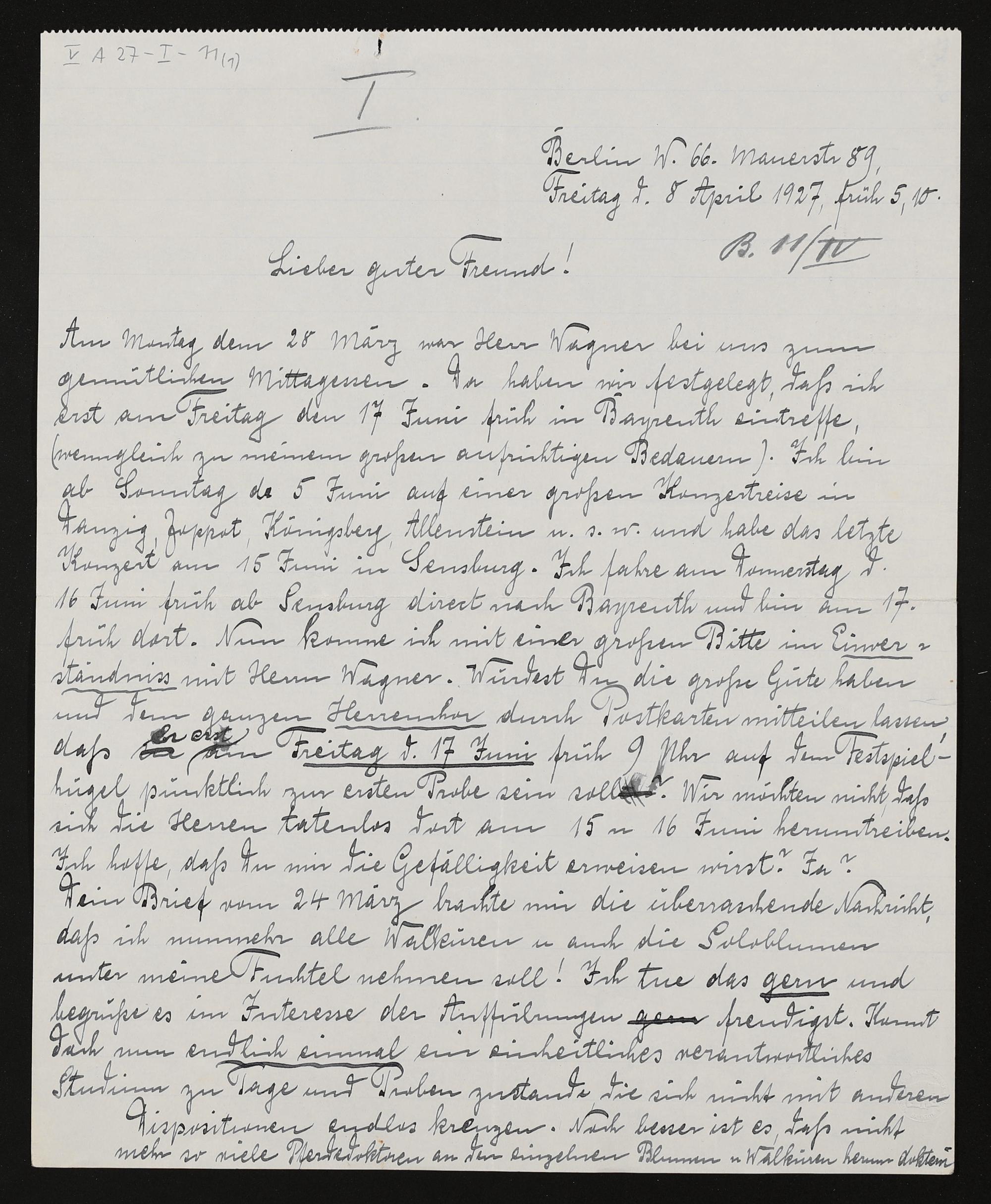 eigenhändiger Brief von Hugo Rüdel an Friedrich Wilhelm Schuler