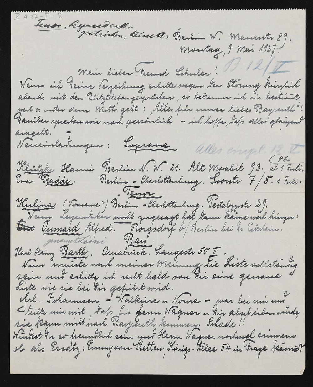 eigenhändiger Brief von Hugo Rüdel an Friedrich Wilhelm Schuler