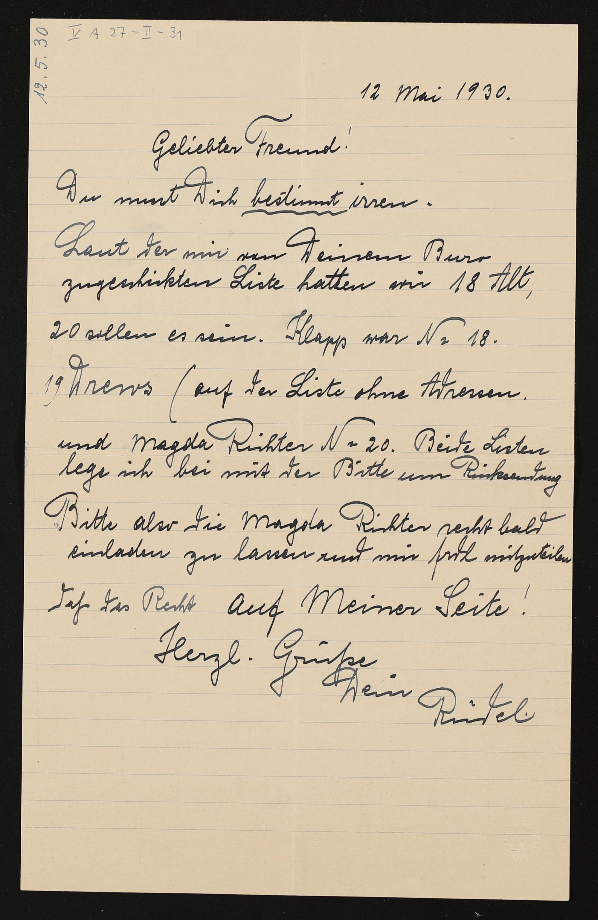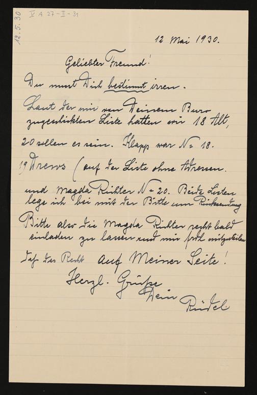 eigenhändiger Brief von Hugo Rüdel an Friedrich Wilhelm Schuler
