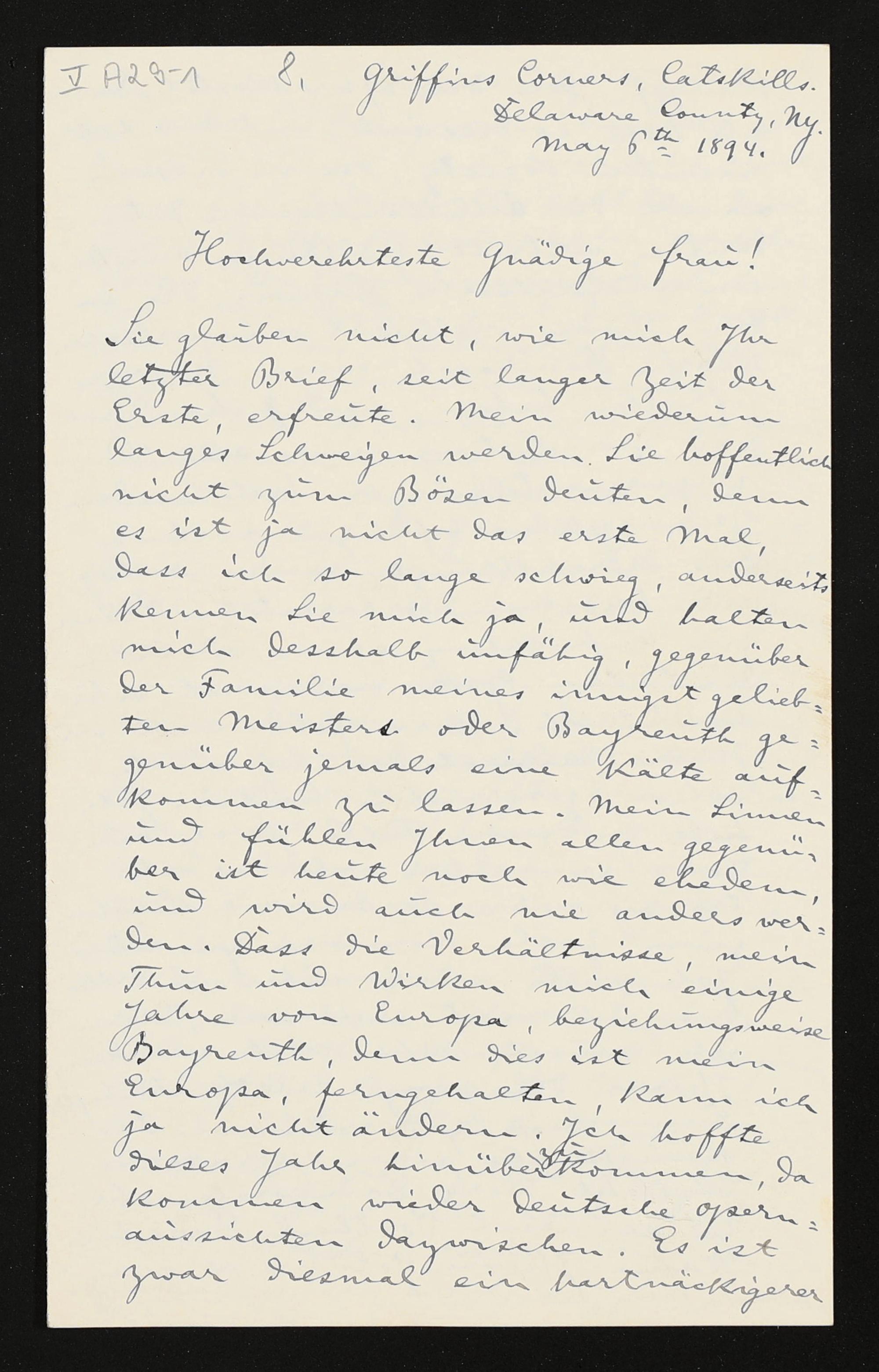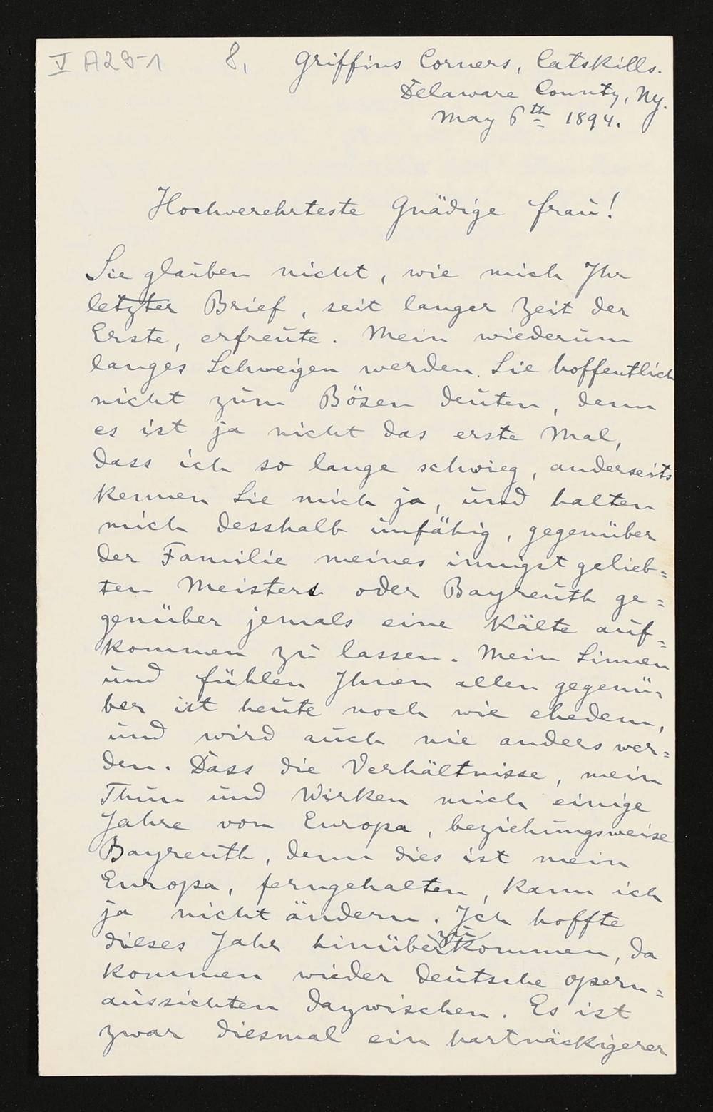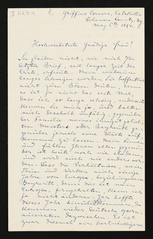 eigenhändiger Brief von Anton Seidl an Cosima Wagner
