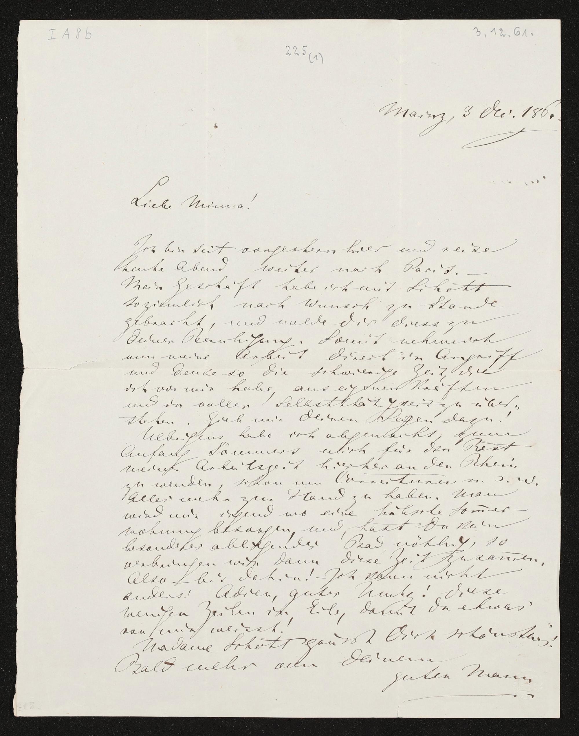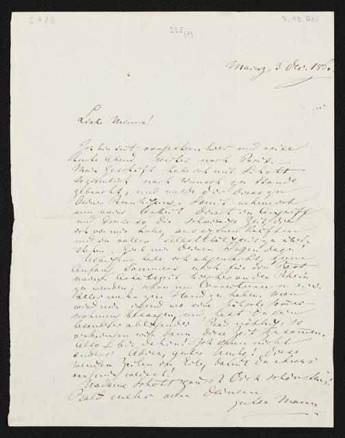 eigenhändiger Brief von Richard Wagner an Minna Wagner
