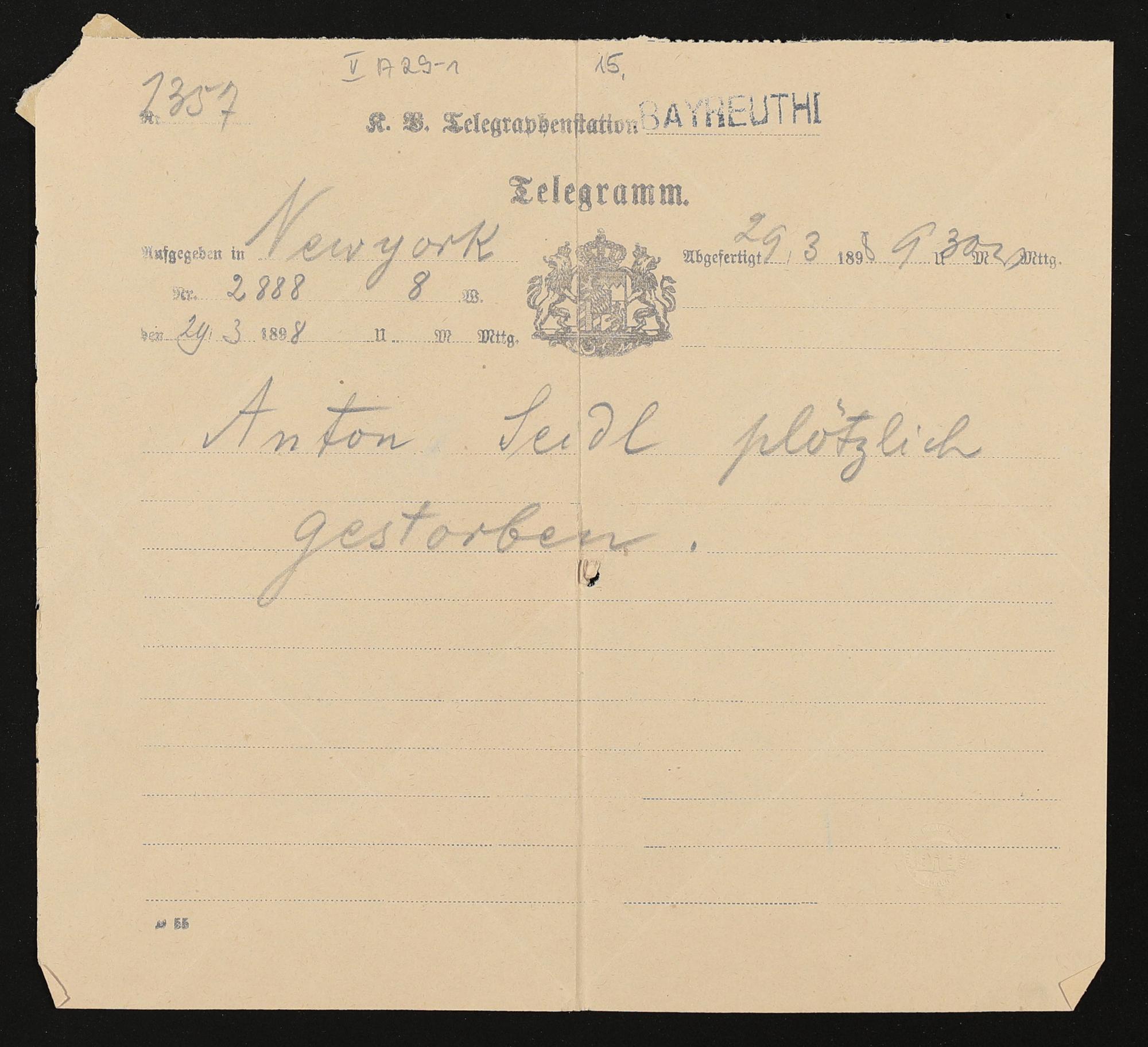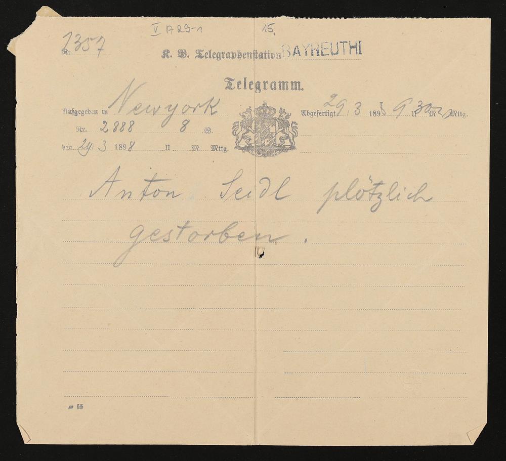 Telegramm von einem unbekannten Absender an Cosima Wagner