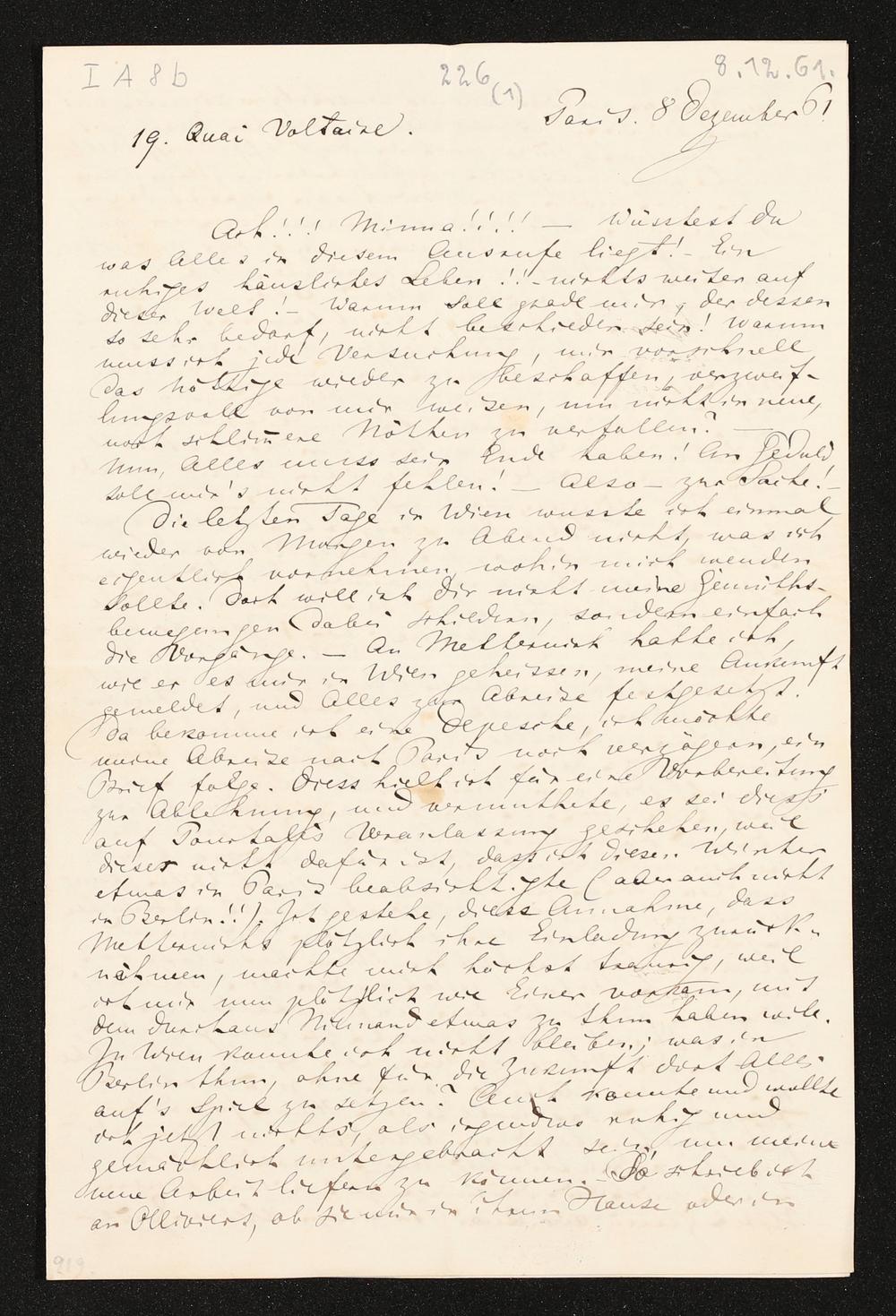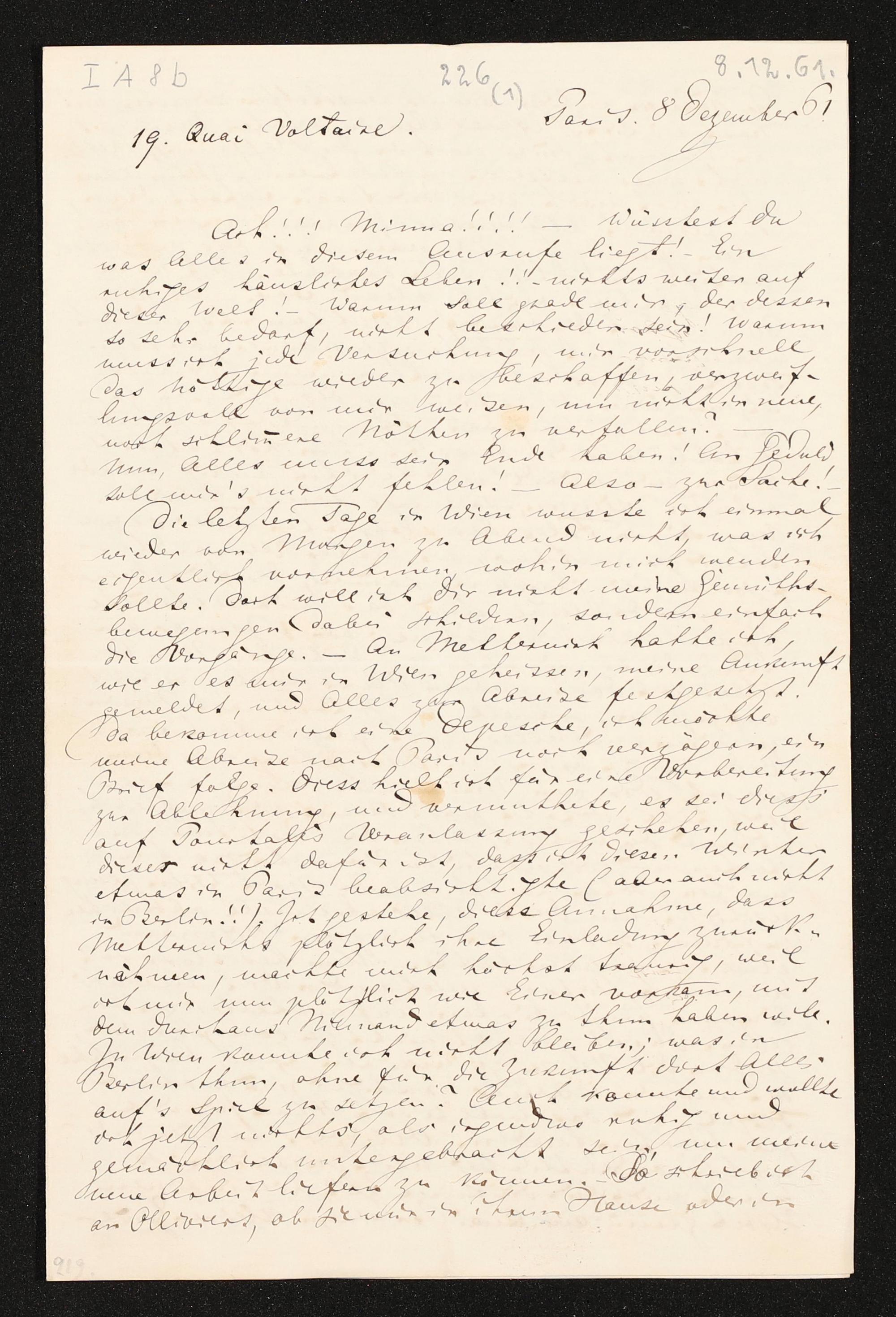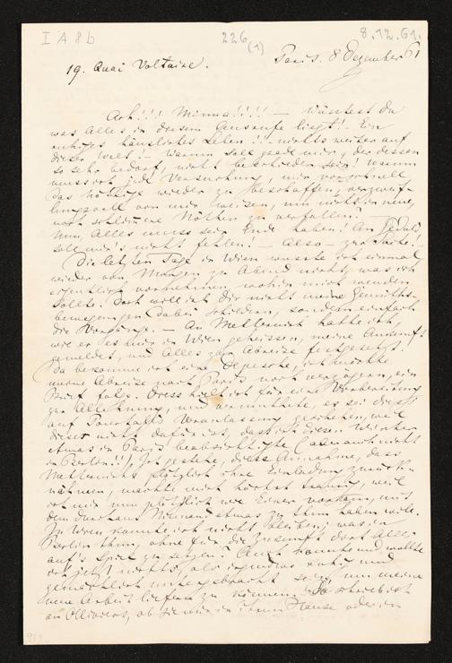 eigenhändiger Brief von Richard Wagner an Minna Wagner