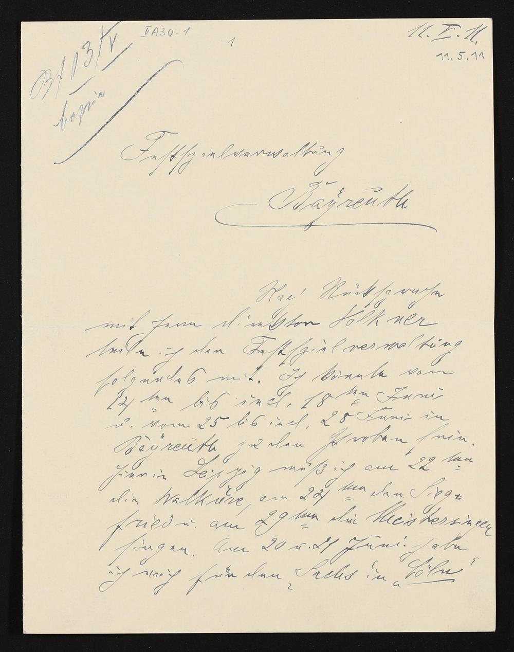 eigenhändiger Brief von Walter Soomer an die Verwaltung der Bühnenfestspiele
