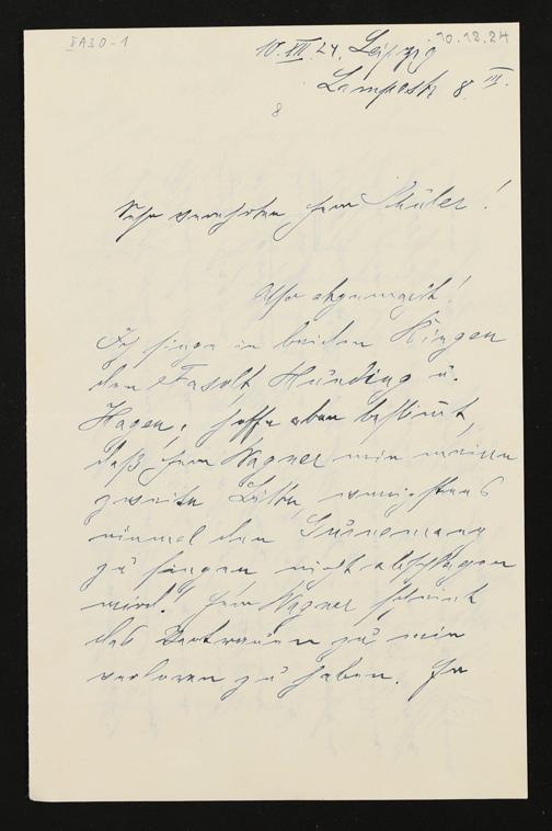 eigenhändiger Brief von Walter Soomer an Friedrich Wilhelm Schuler