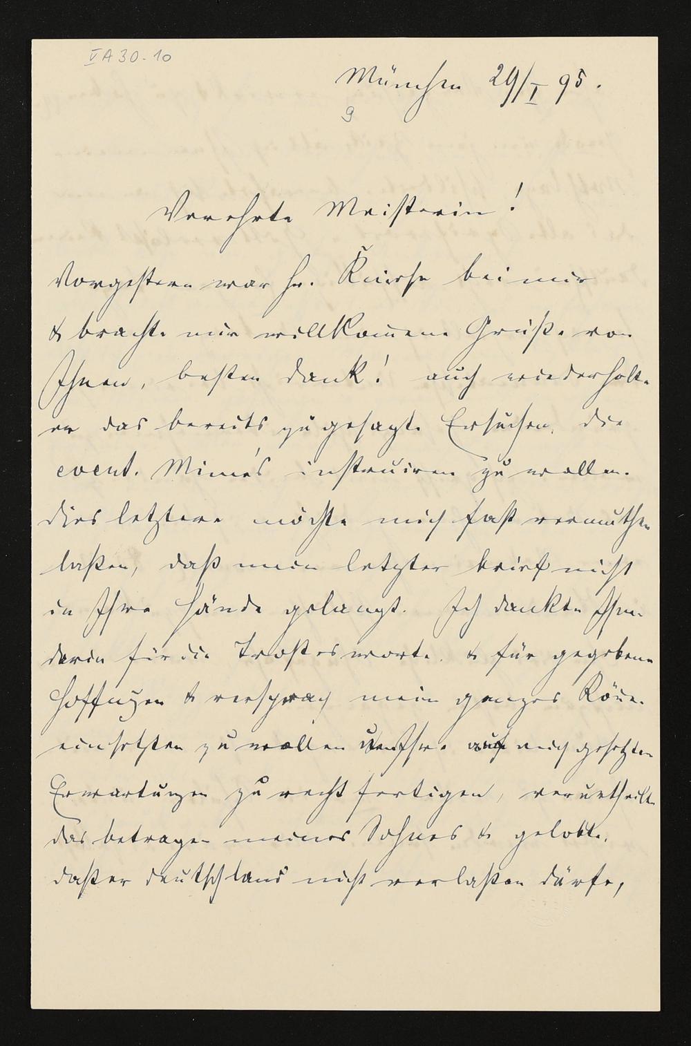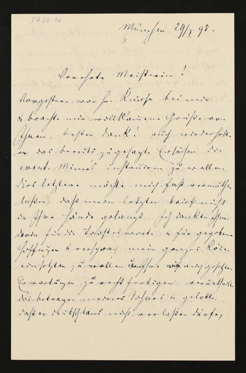 eigenhändiger Brief von Max Schlosser an Cosima Wagner