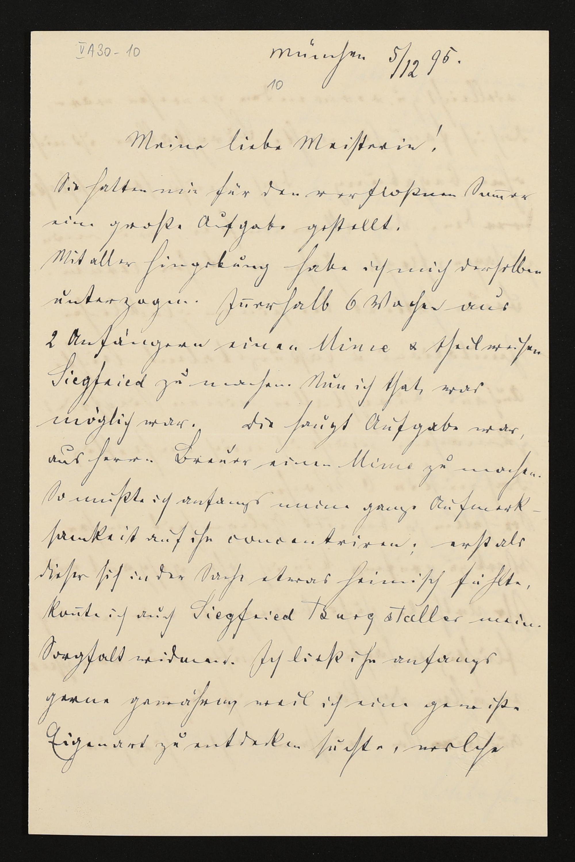 eigenhändiger Brief von Max Schlosser an Cosima Wagner