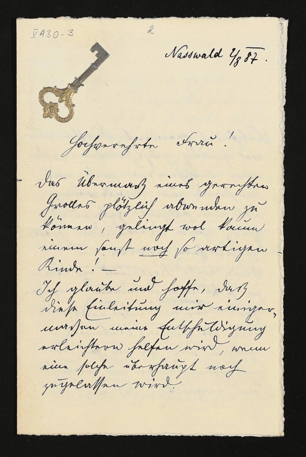 eigenhändiger Brief von Josef Sucher an Cosima Wagner